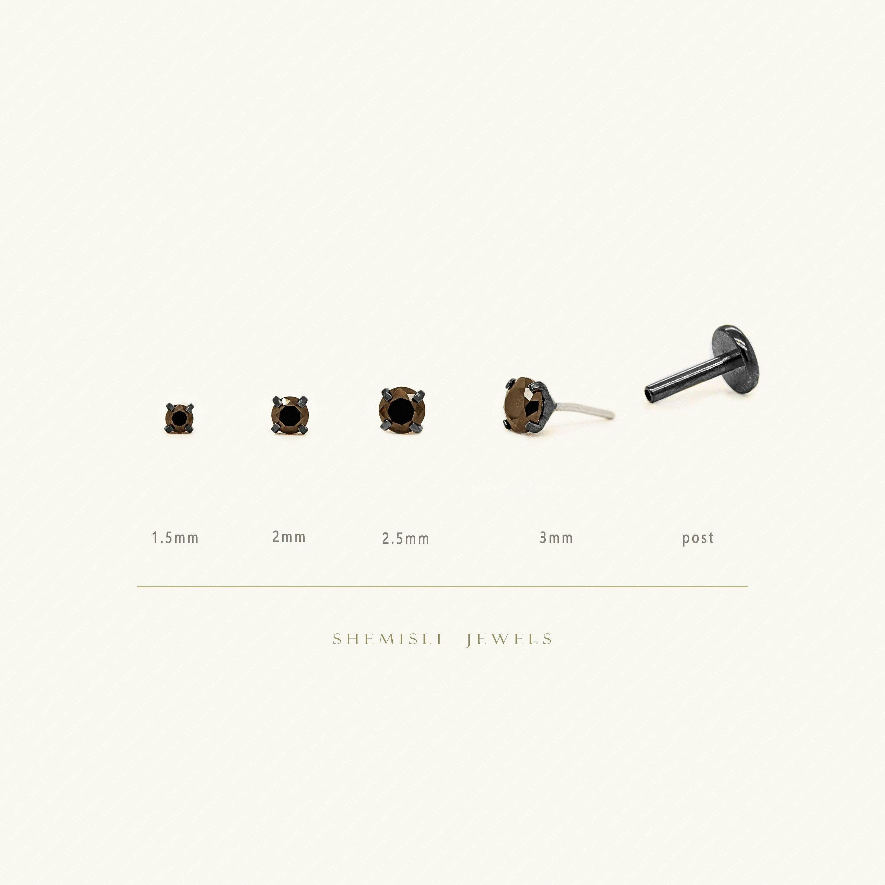 Tiny Black Stone Threadless Flat Back Earring, 20,18,16ga, 5-10mm,