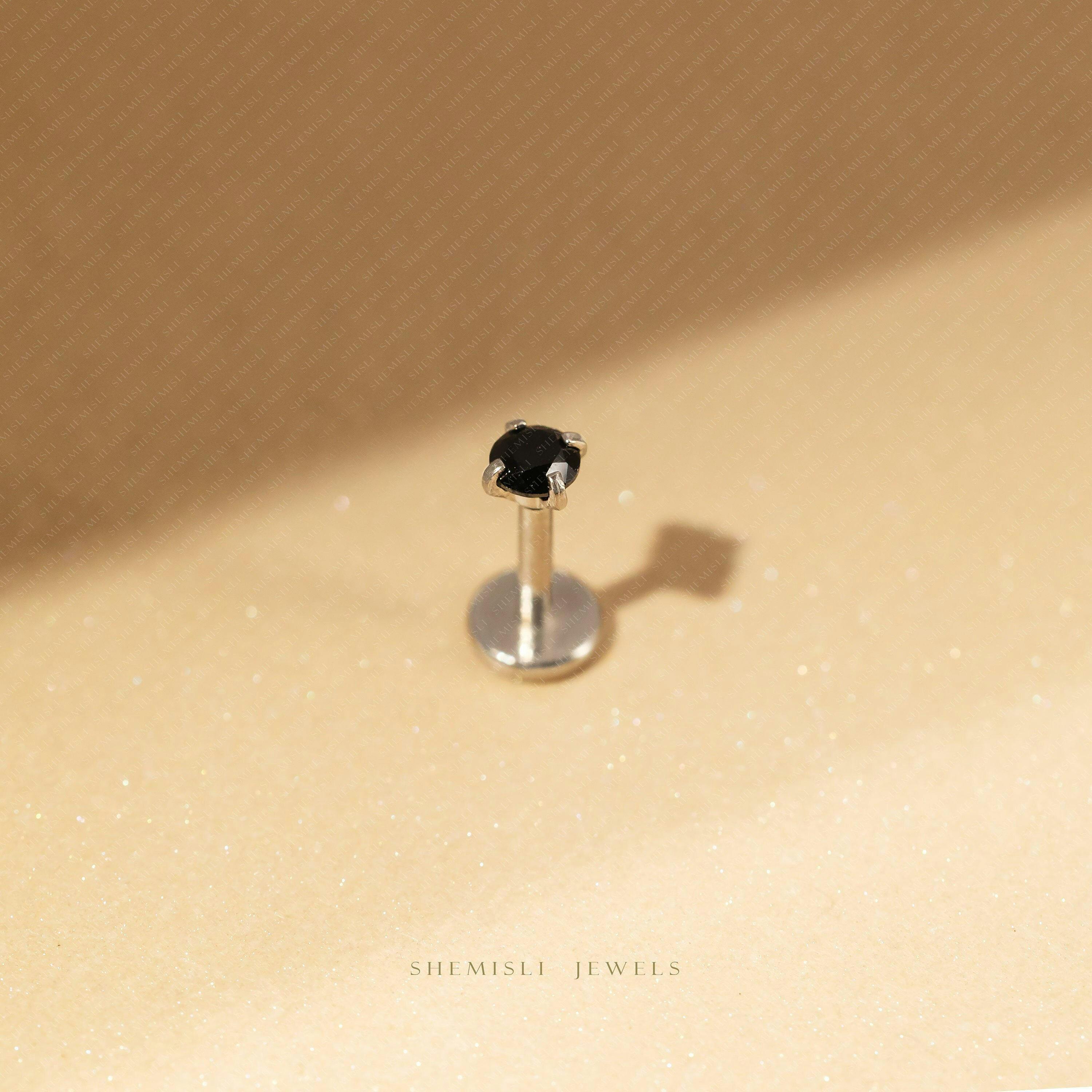 Tiny Black Stone Threadless Flat Back Nose Stud, 20,18,16ga,