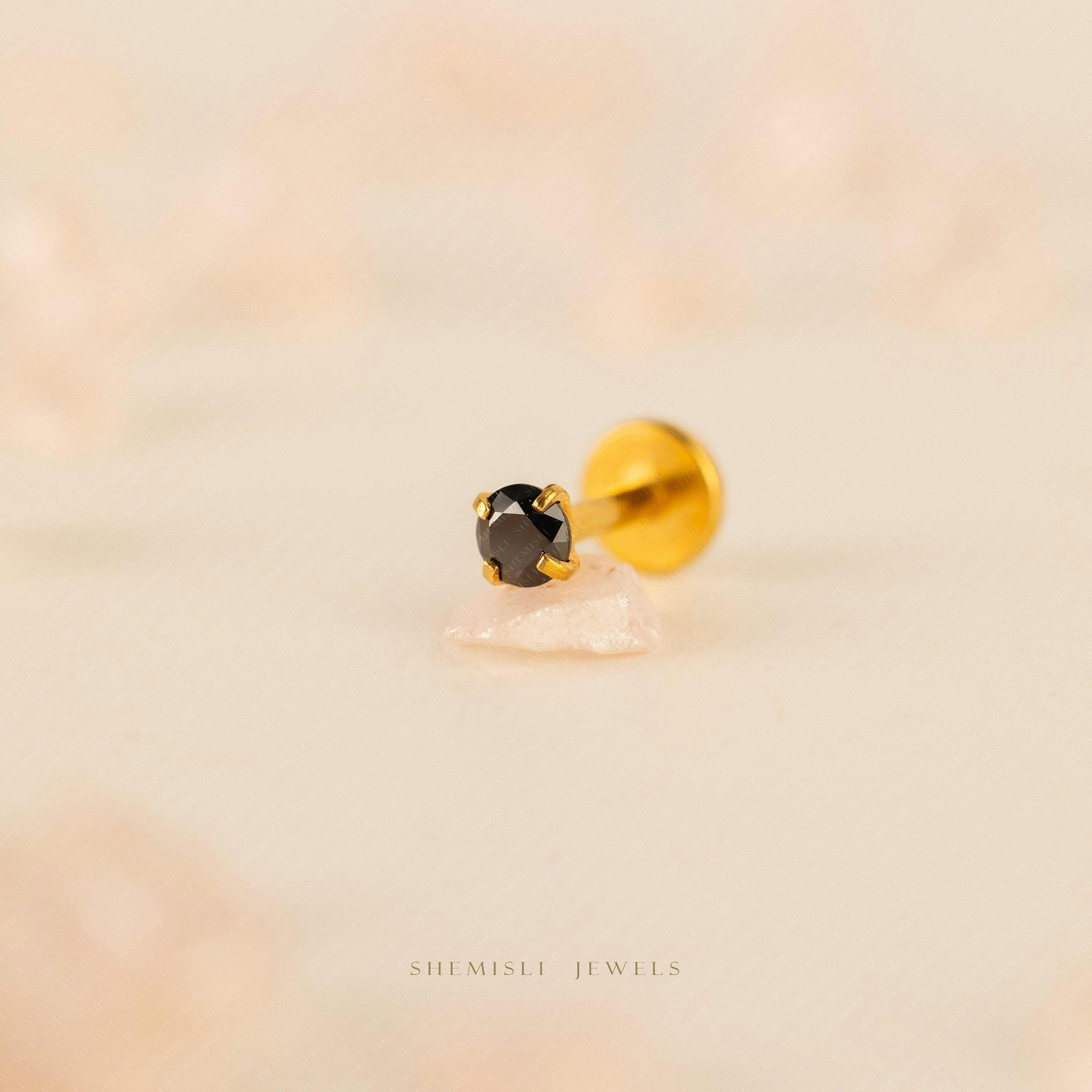 Tiny Black Stone Threadless Flat Back Lip Labret Stud,