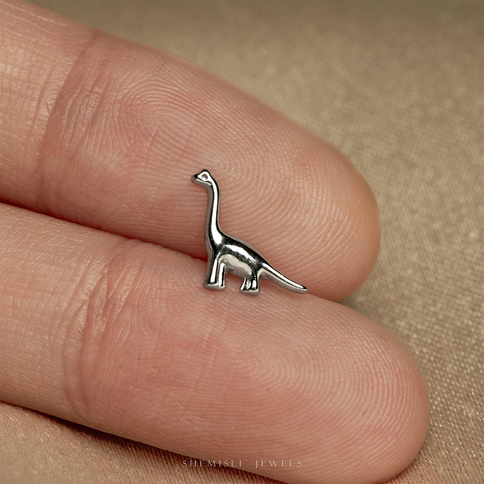 Tiny Brachiosaurus Threadless Flat Back Earring, 20,18,16ga, 5-10mm Unisex,