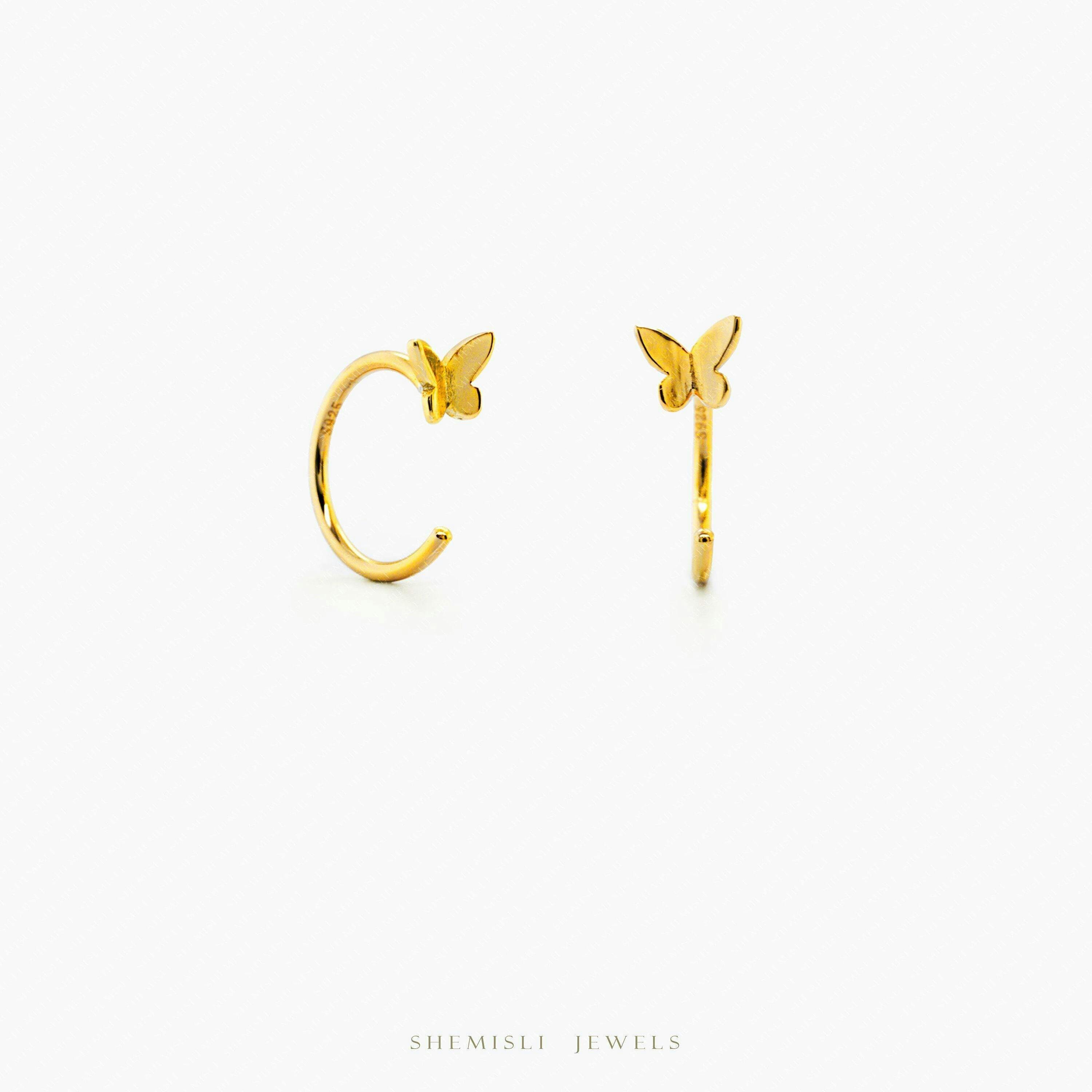Tiny Butterfly Jackets Earring, Unisex, Gold, Silver SHEMISLI SJ026