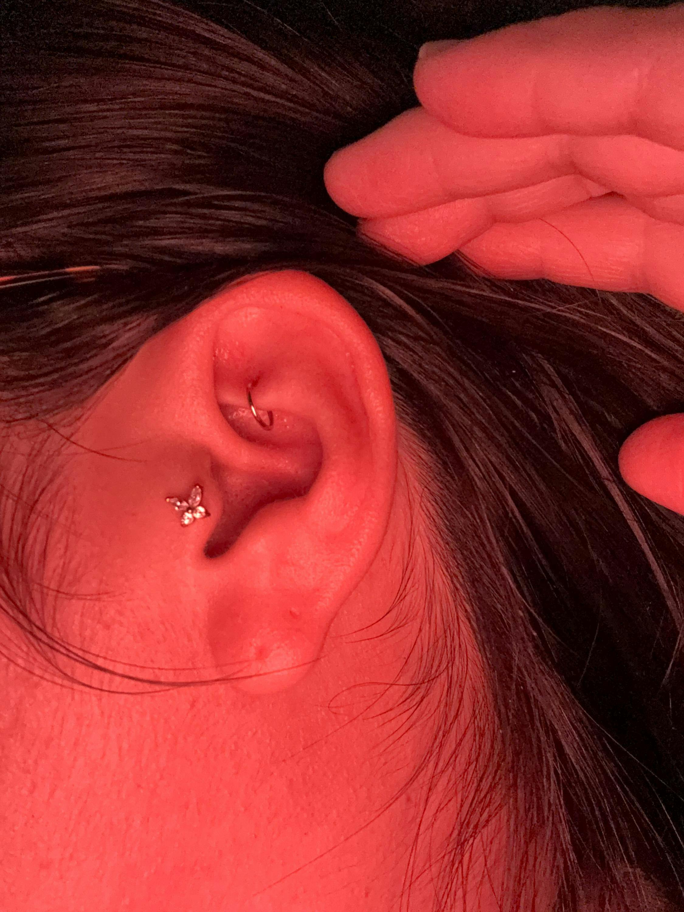 Tiny Butterfly White Stone Threadless Flat Back Tragus Stud,