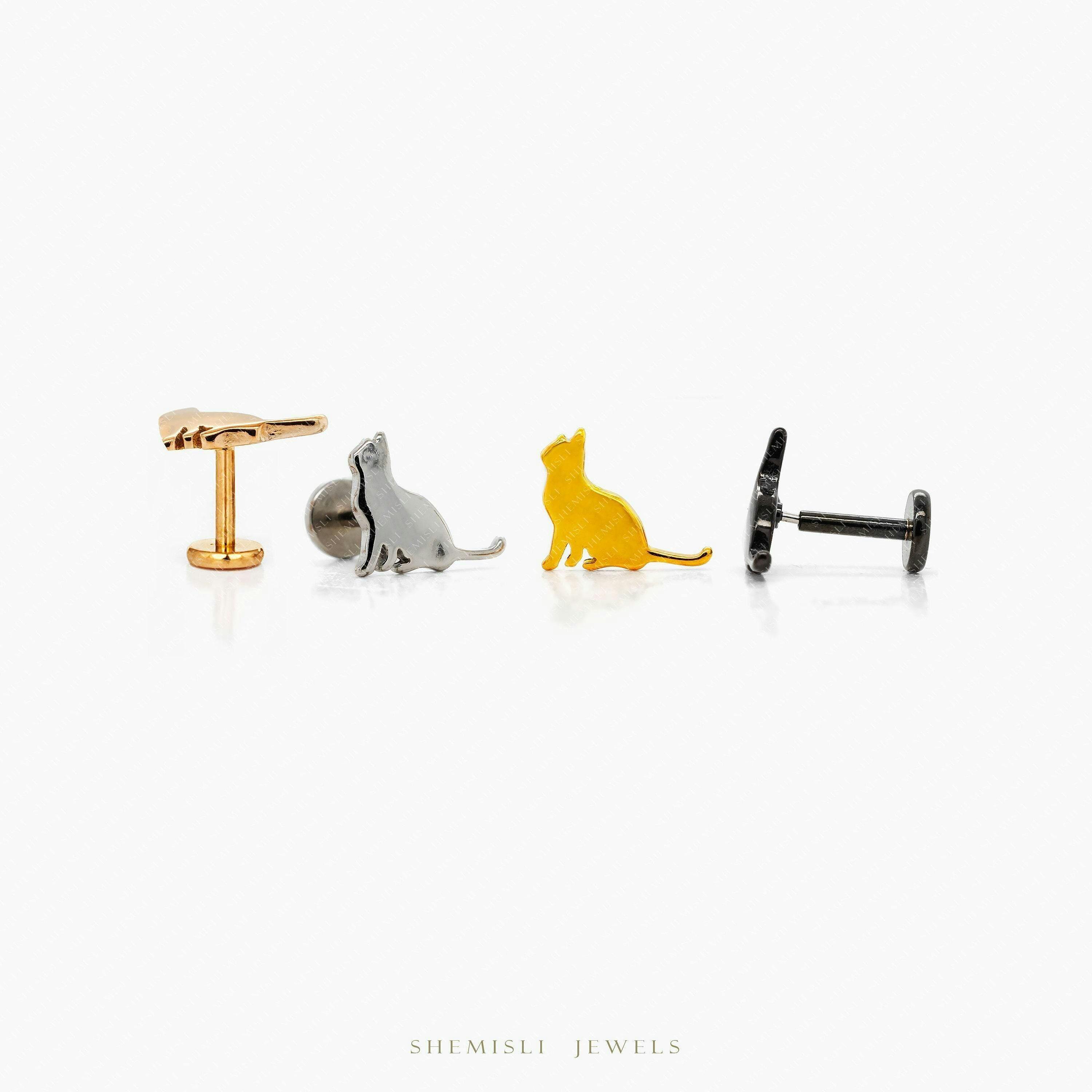 Tiny Cat Threadless Flat Back Earring, 20,18,16ga, 5-10mm Unisex,