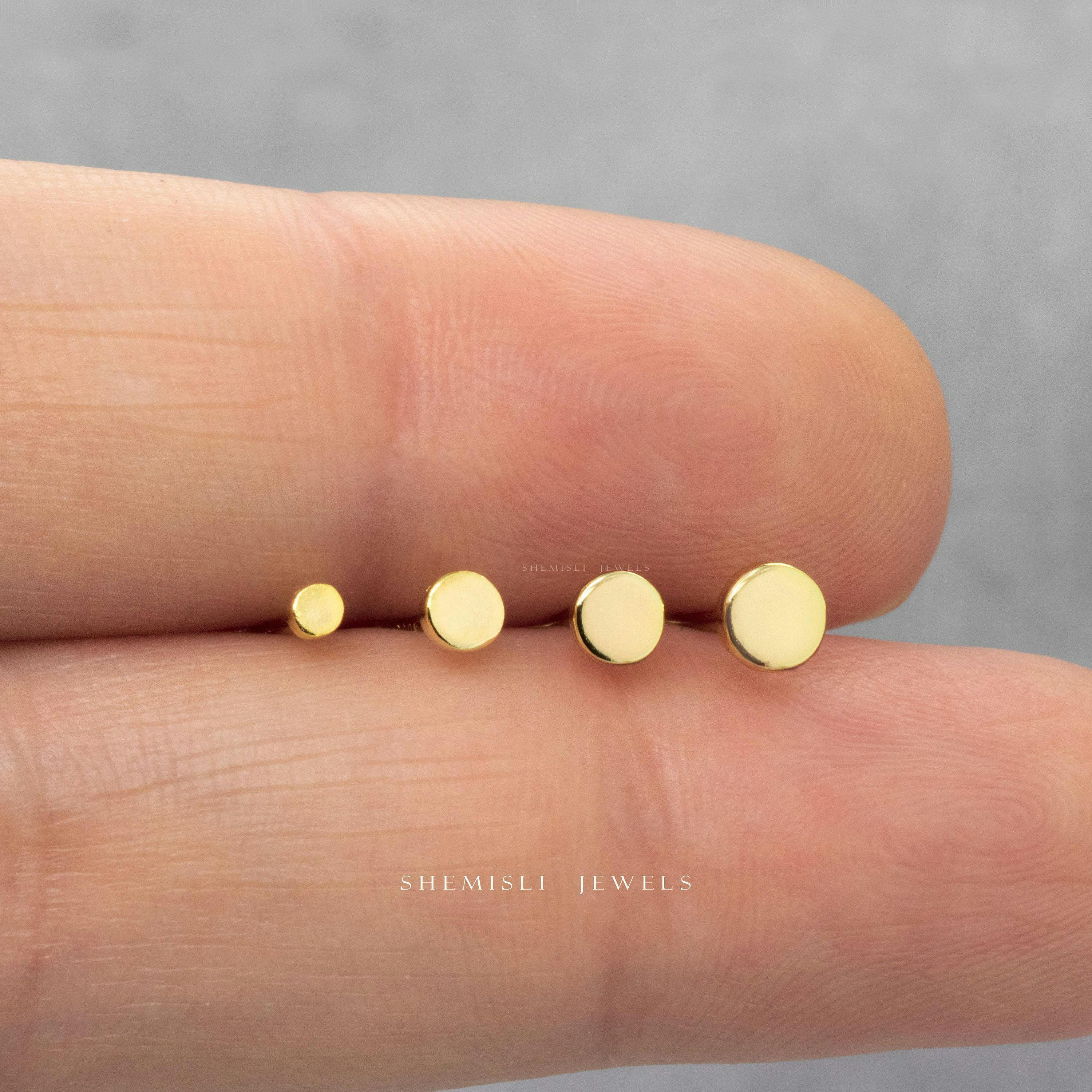 Tiny Circle Stud 2, 3, 3.5, 4mm Unisex, Gold,