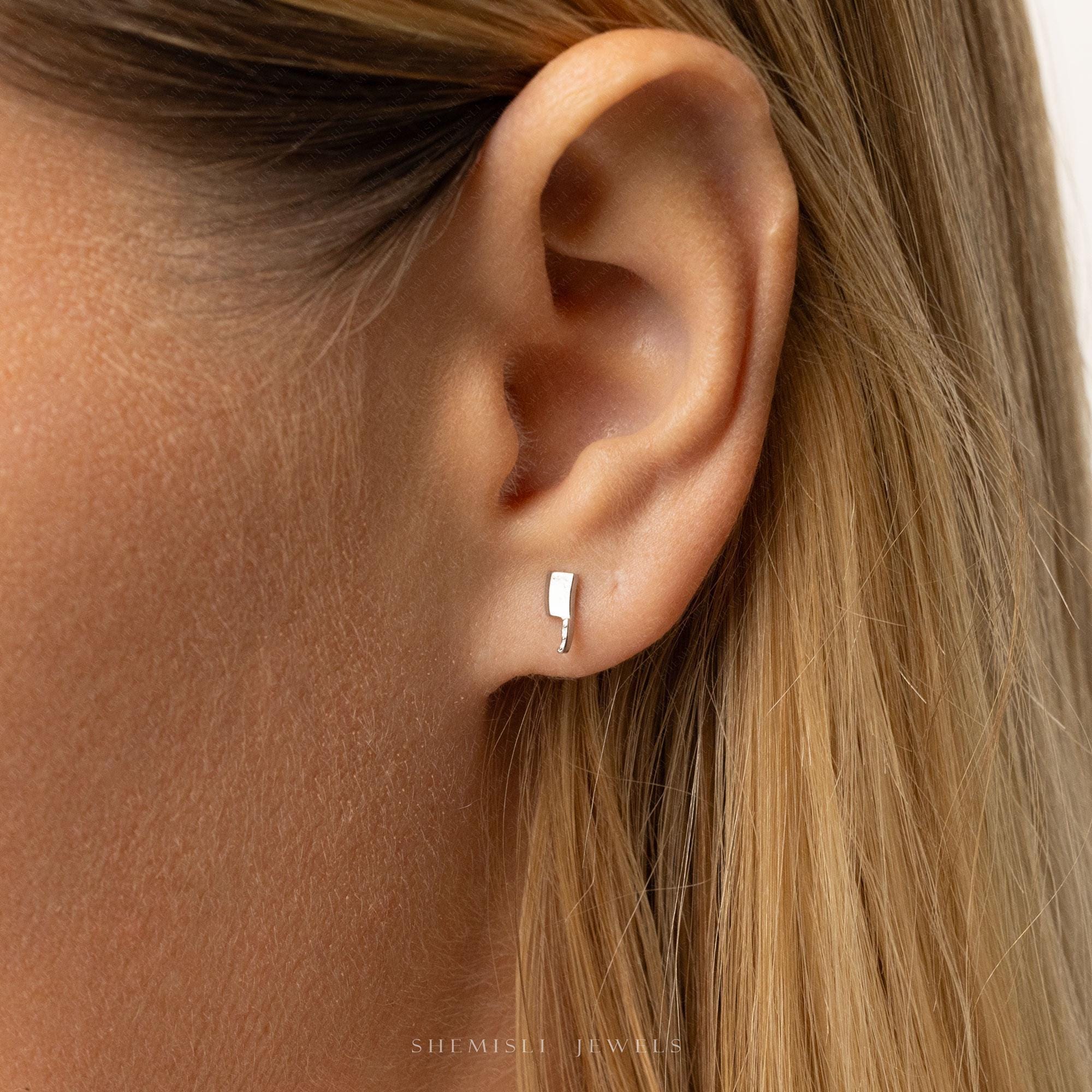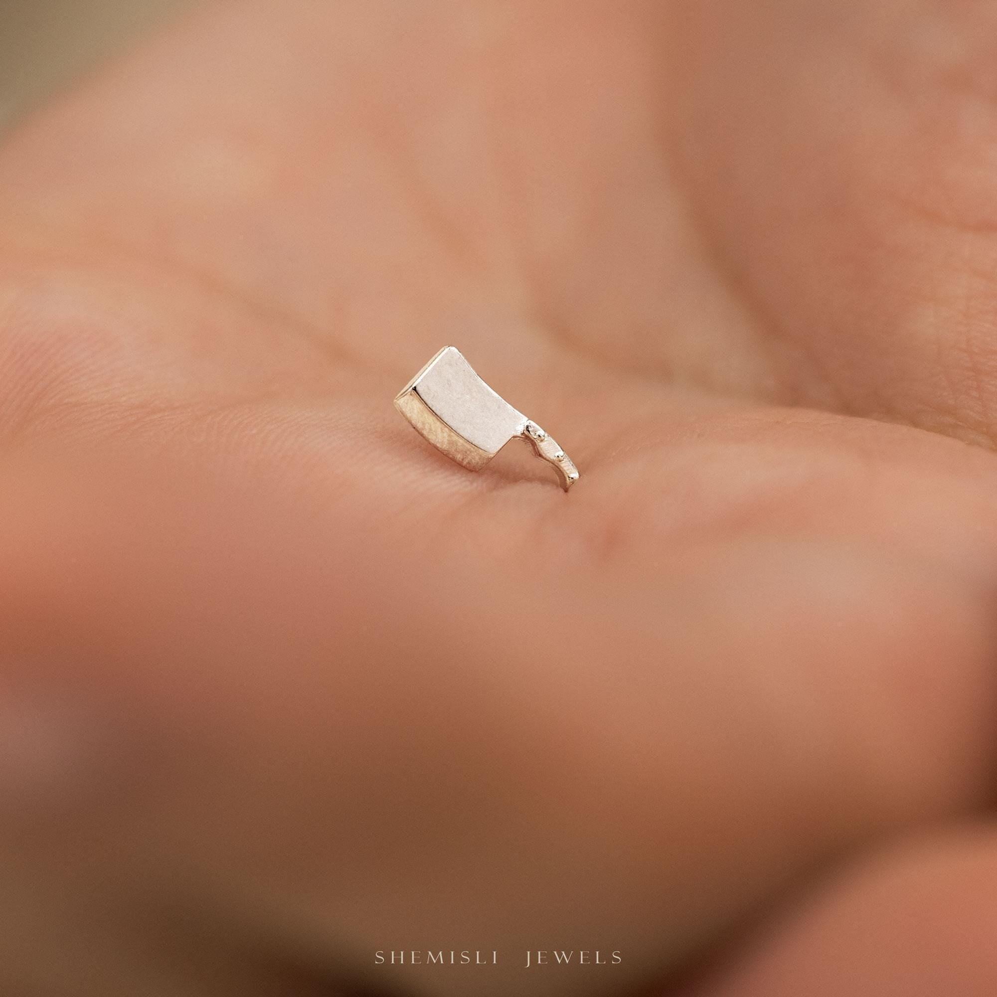 Cleaver Knife Stud, Threadless Flat Back Earring, Minimalist Style, A-SS1097