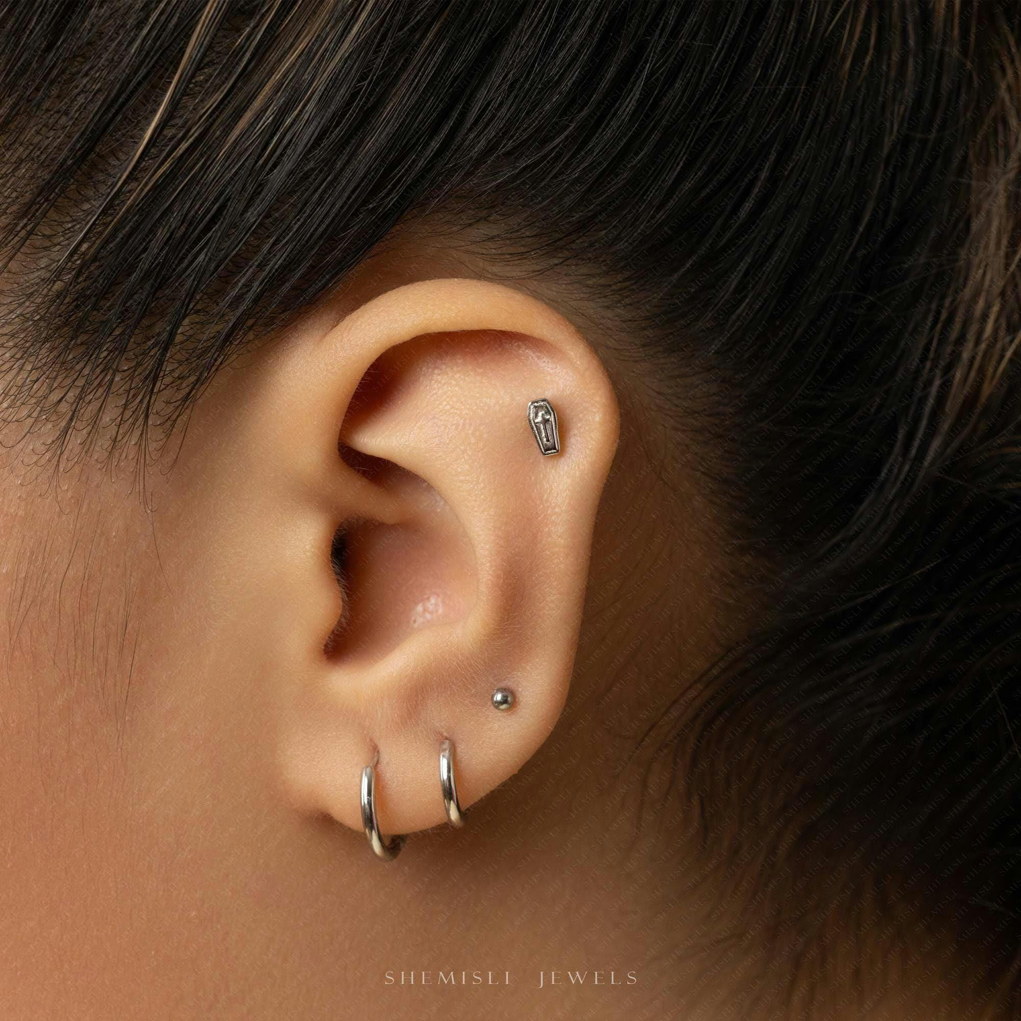 Tiny Coffin Threadless Flat Back Earrings, 20,18,16ga, 5-10mm Unisex,