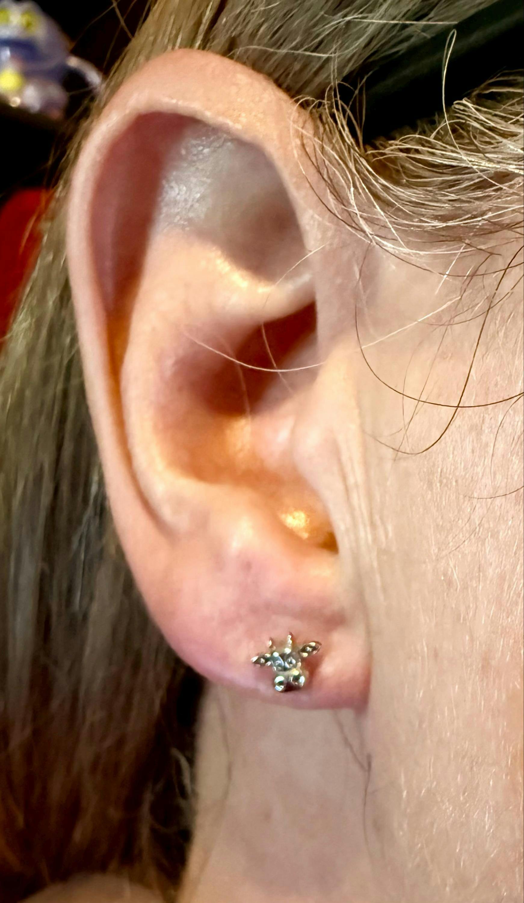Love these little cow earrings, they're super cute, and very small. Perfect for leaving in 24 hours a day.