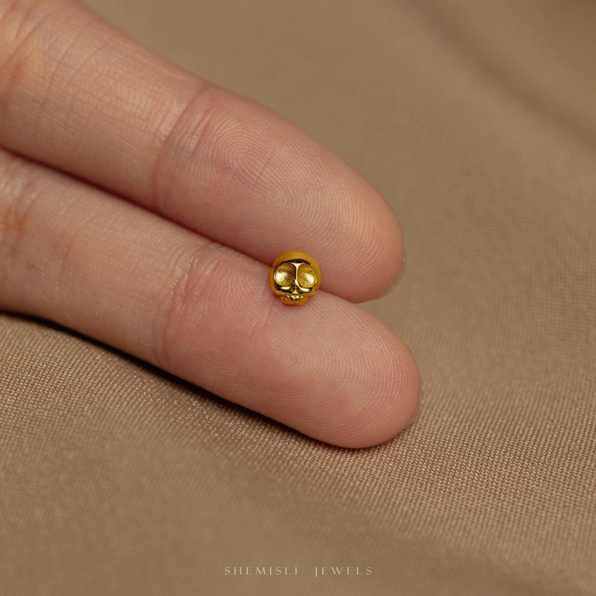 Tiny Cute Skull Threadless Flat Back Earring, 20,18,16ga, 5-10mm
