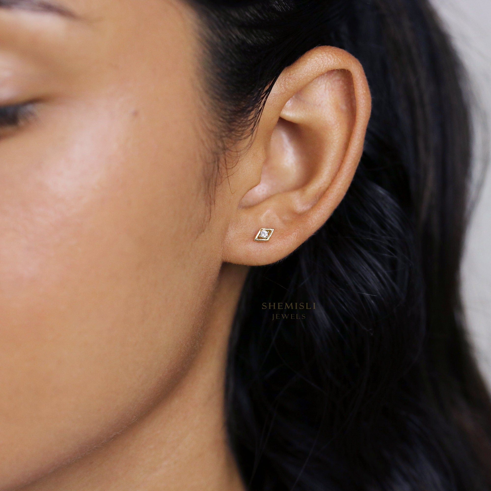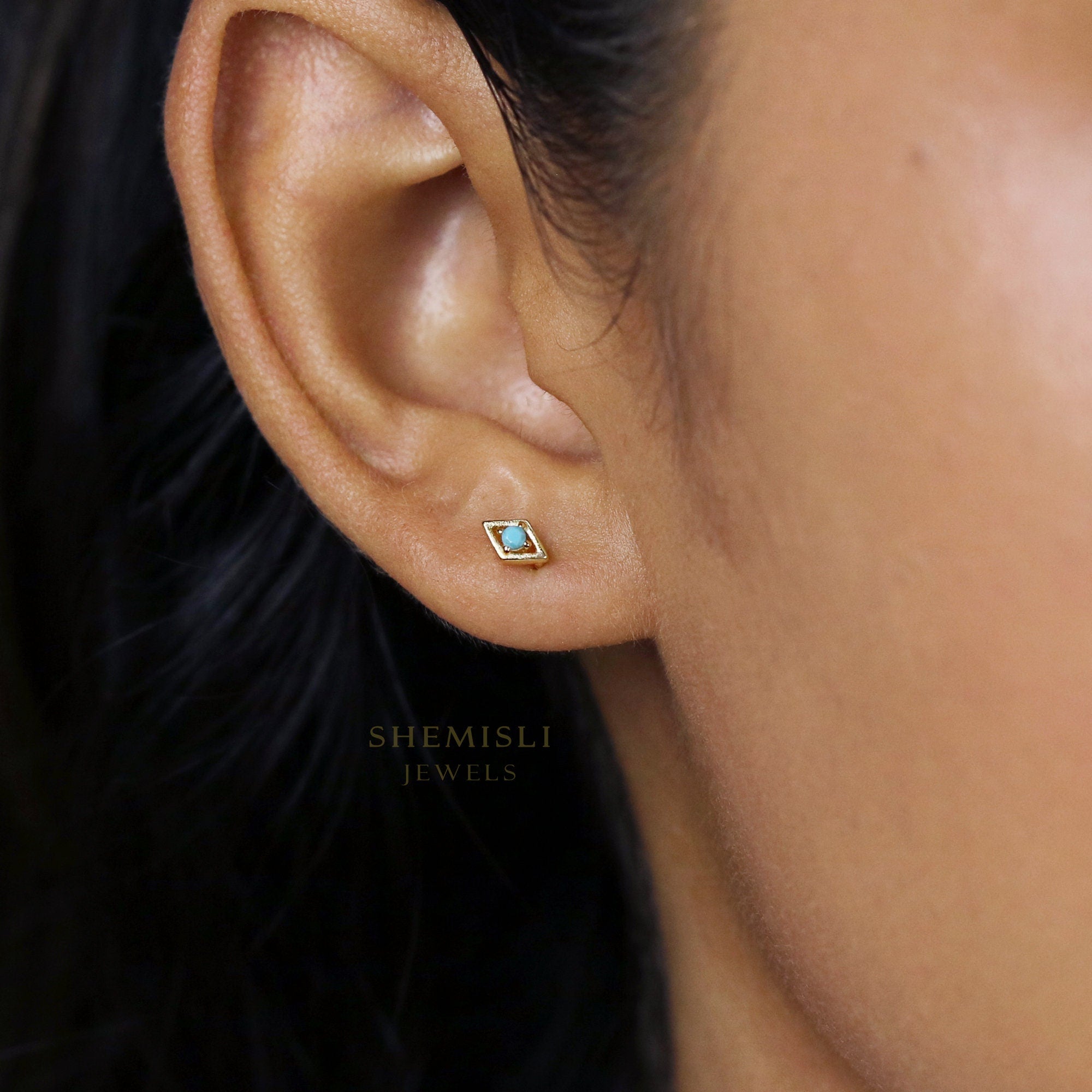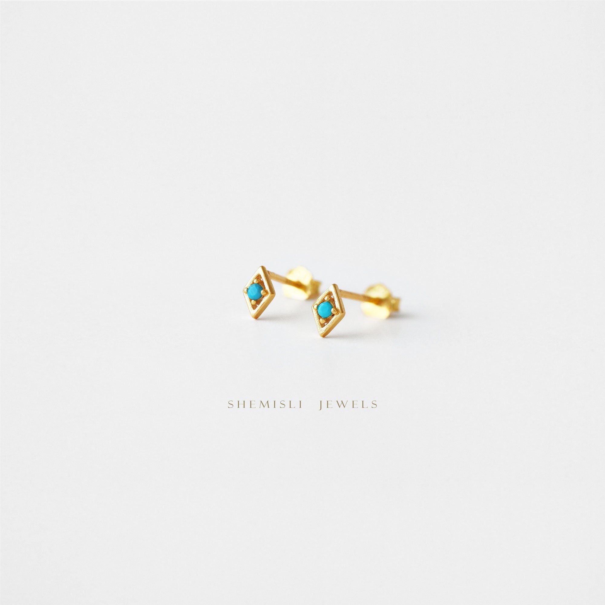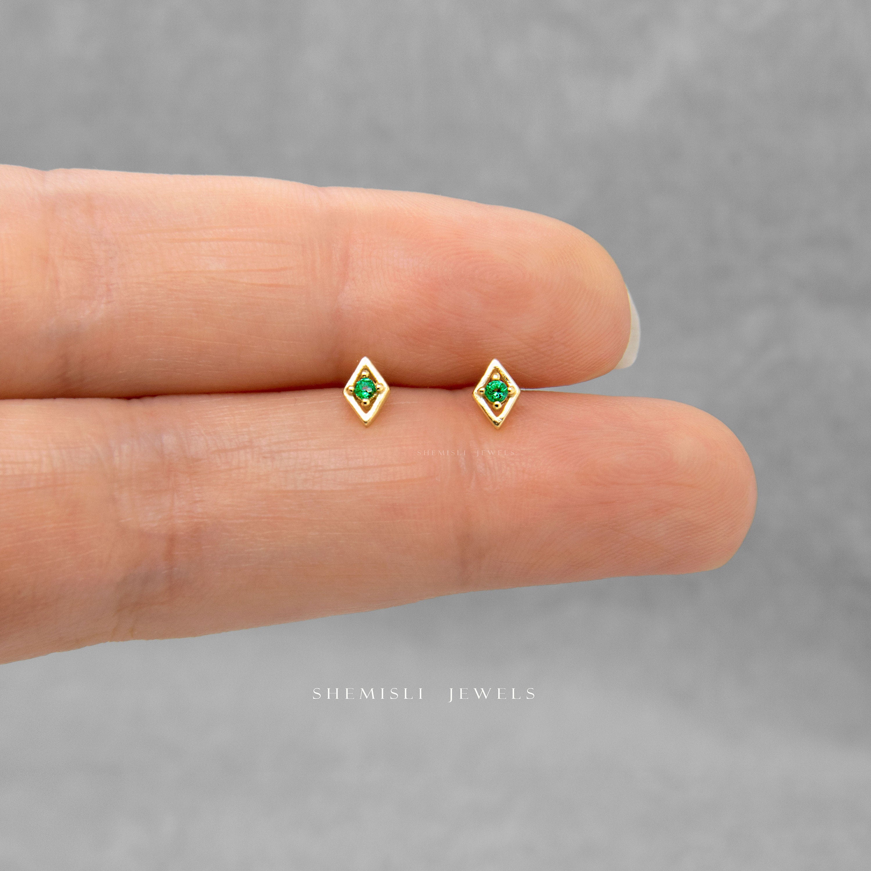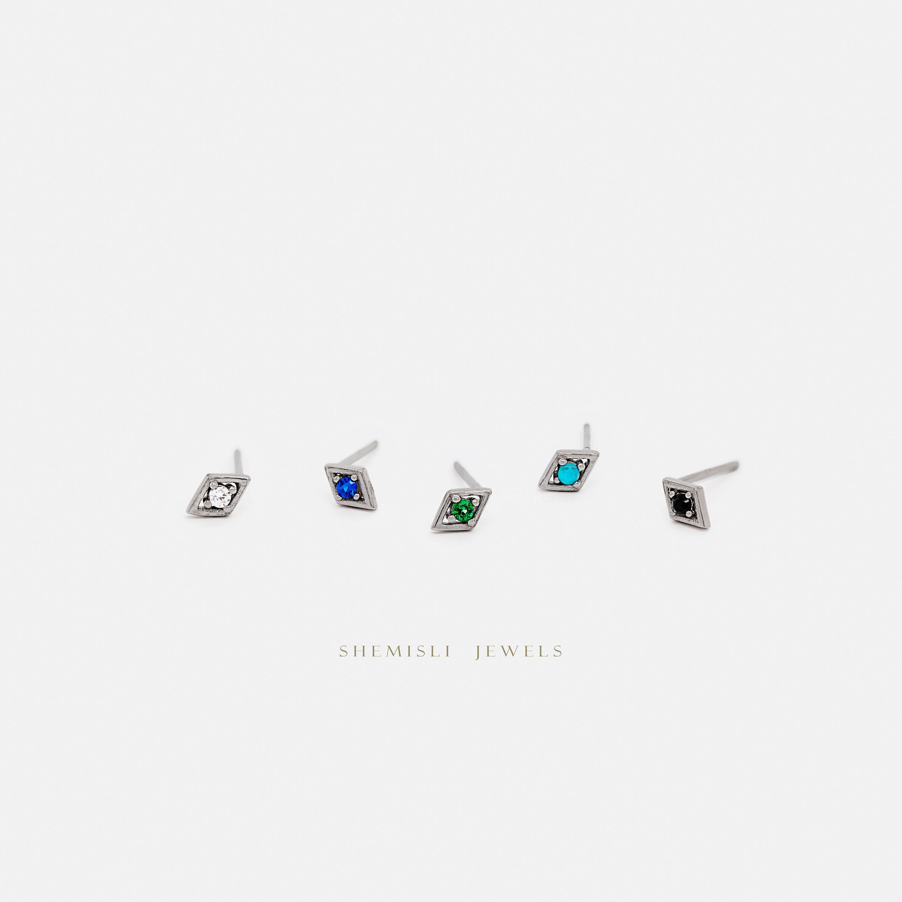 Tiny CZ Diamond Shape Stud, White, Emerald, Turquoise, Sapphire,
