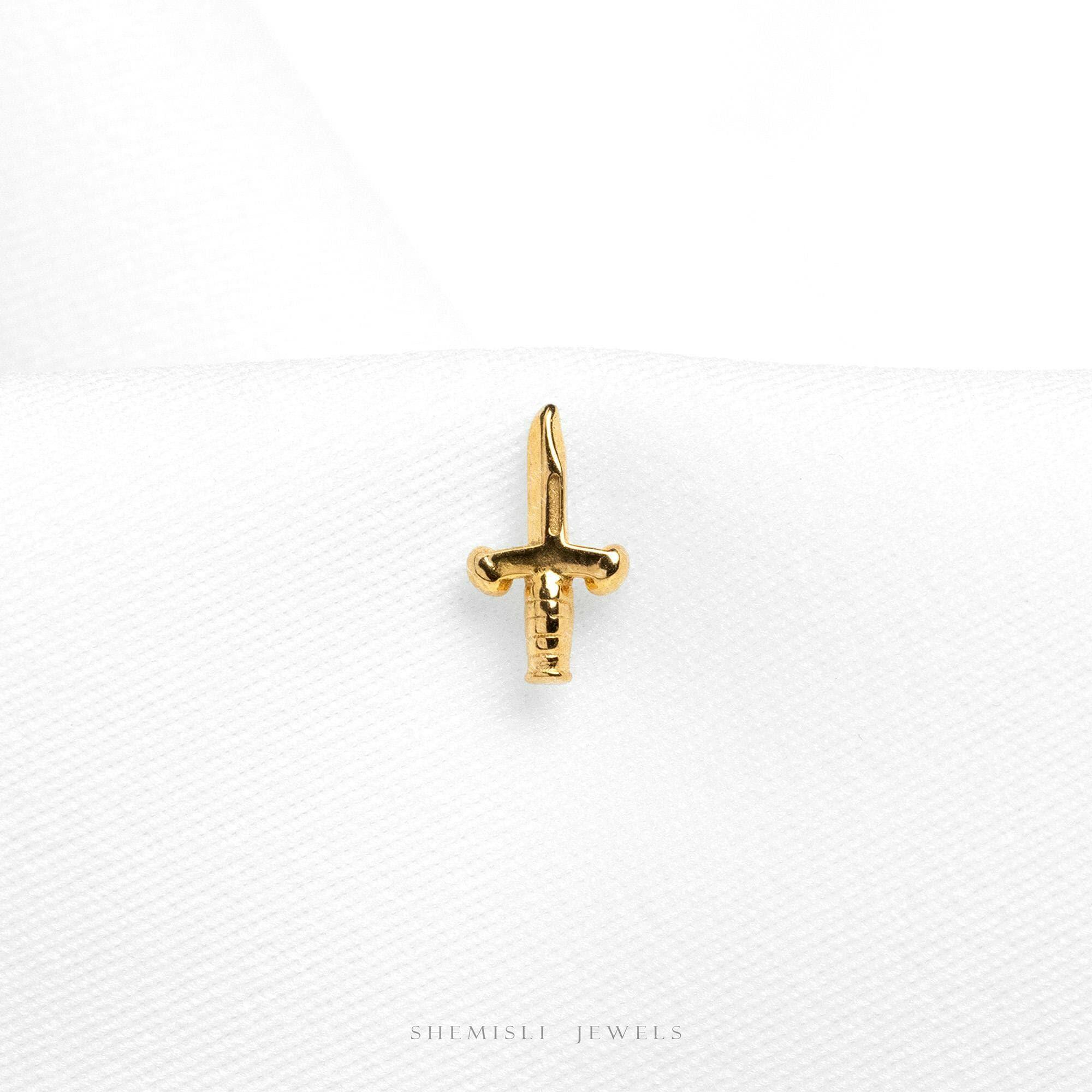 Tiny Dagger Knife Threadless Flat Back Earring, 20,18,16ga, 5-10mm