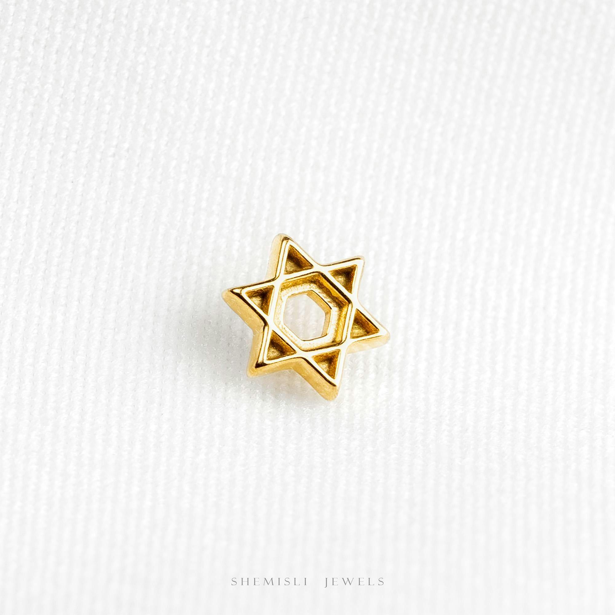 Tiny David Star Threadless Flat Back Earring, 20,18,16ga, 5-10mm