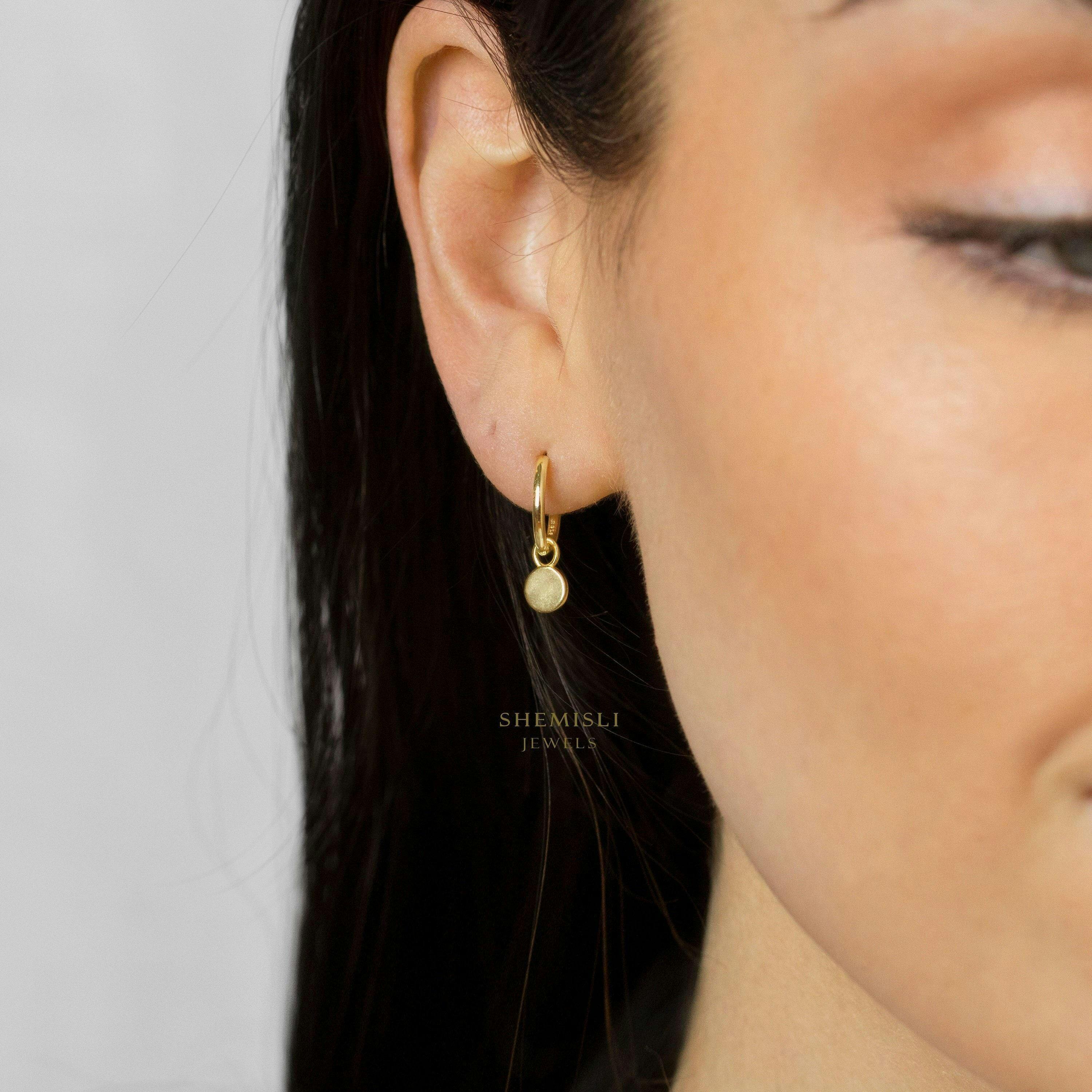 Tiny Disc Drop Hoop, Unisex, Gold, Silver SHEMISLI SH343