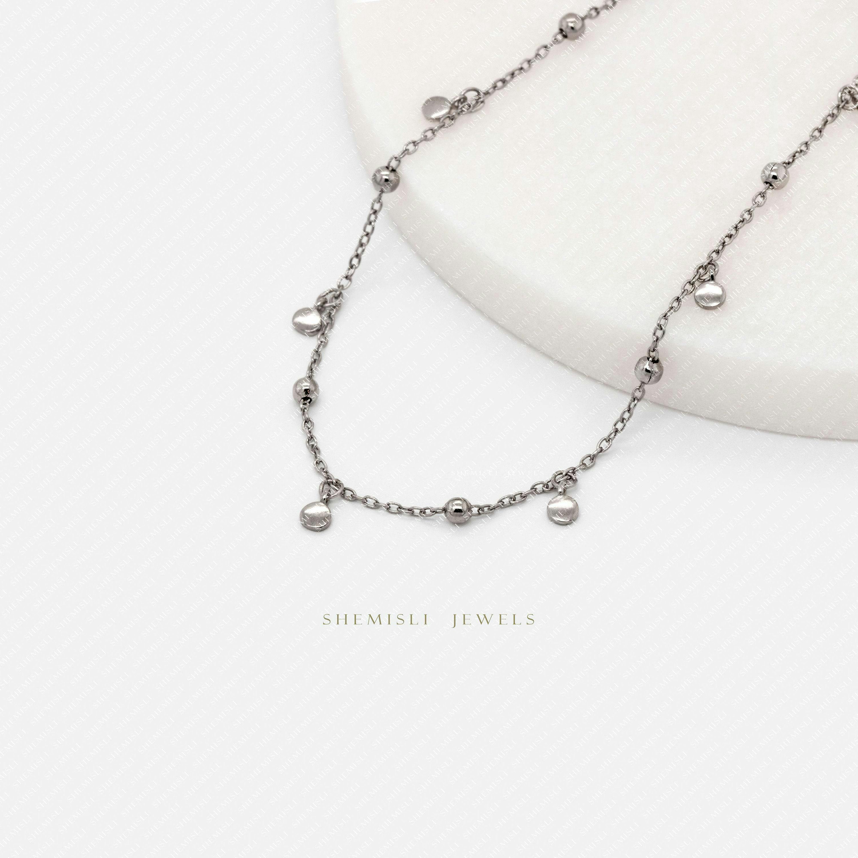 Tiny Disc on Beaded Chain Choker Necklace, Unisex, Gold,