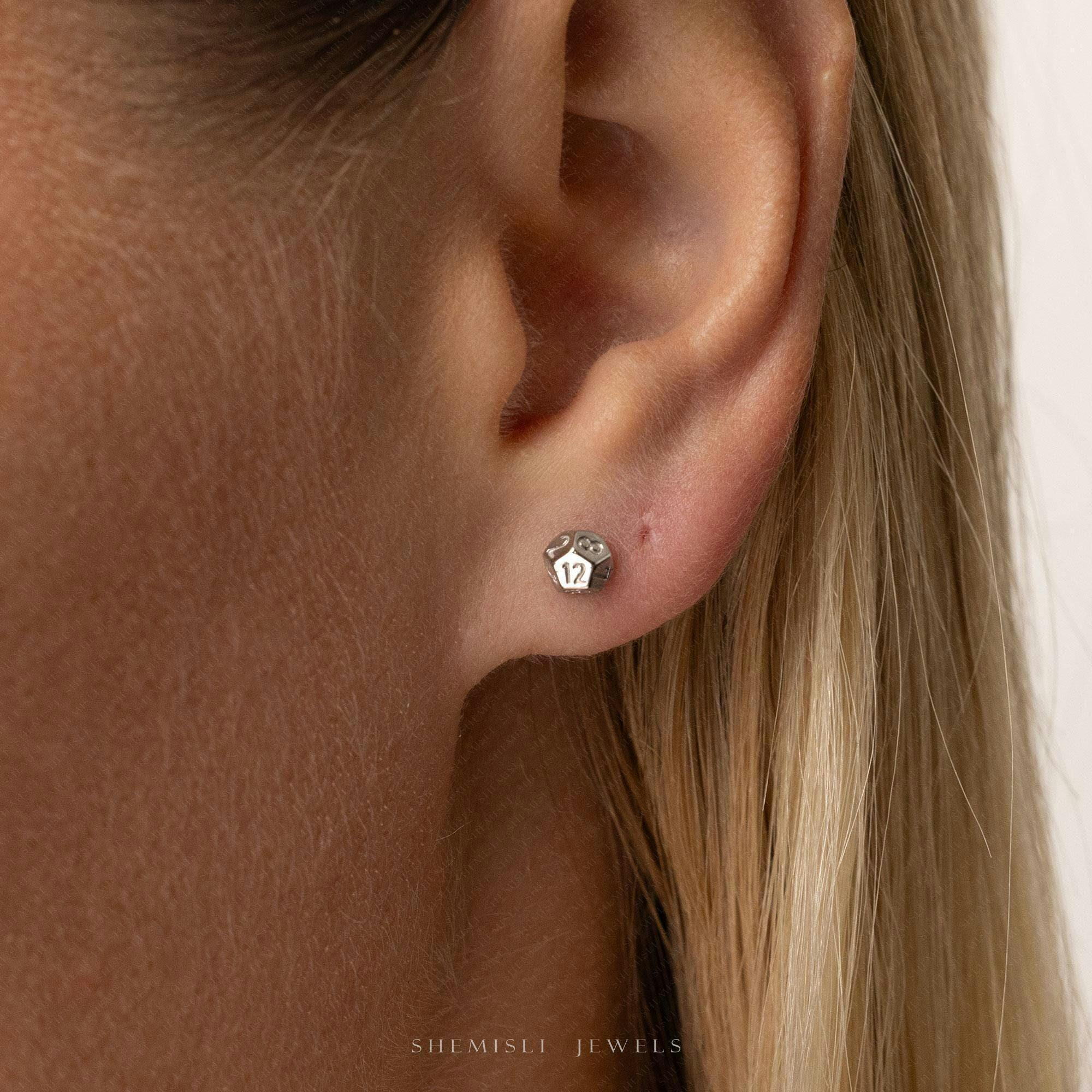 Tiny Dodecahedron Dice Threadless Flat Back Earring, 20,18,16ga, 5-10mm