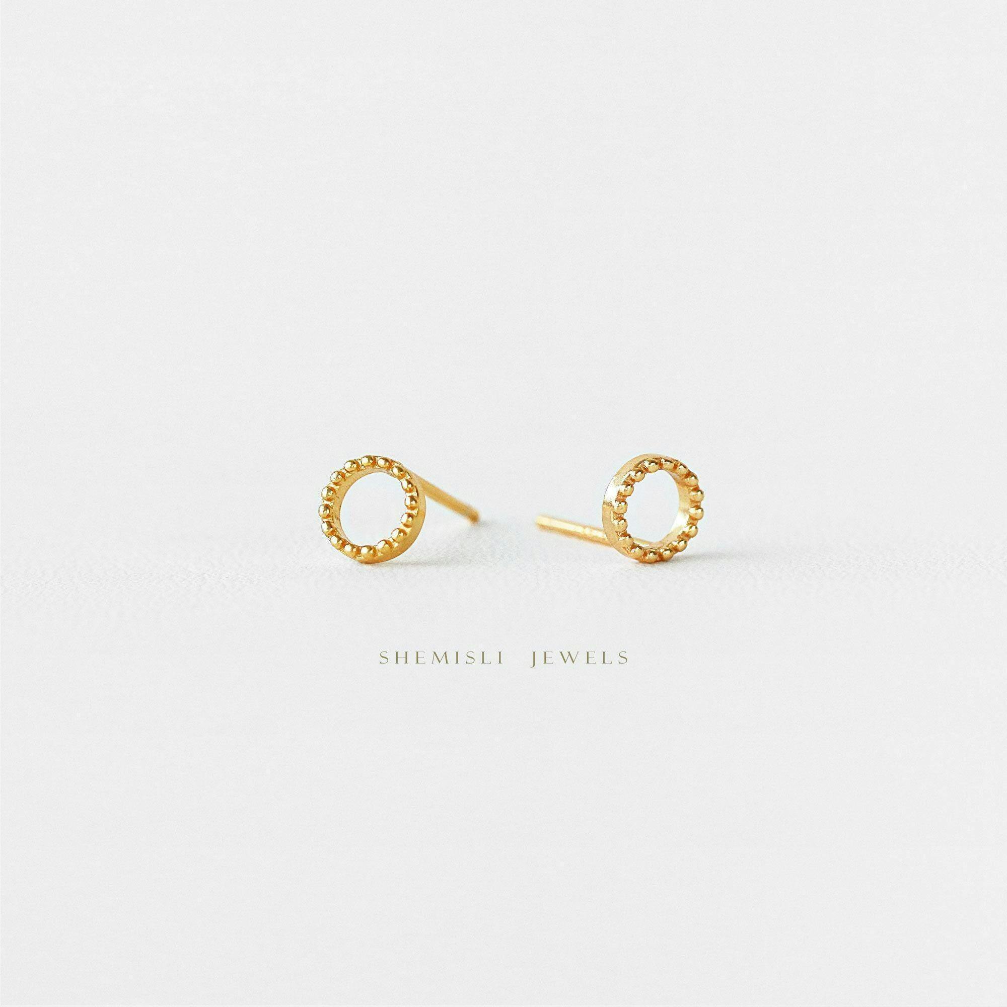 Tiny Dotty Open Circle Stud Earring, Unisex, Gold, Silver