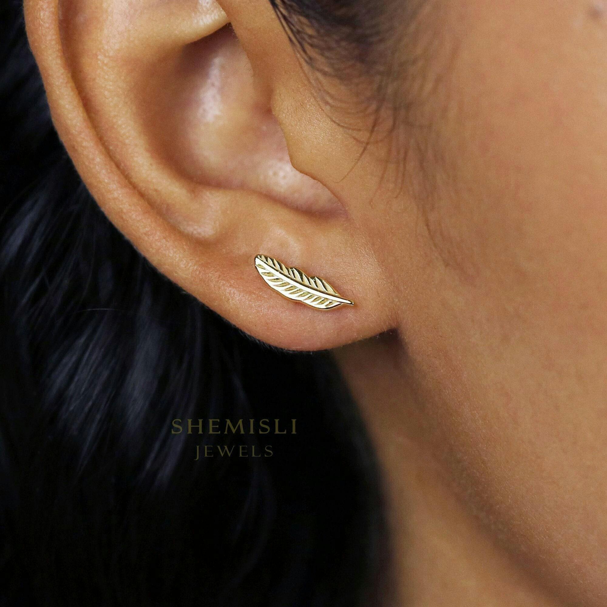 Tiny Feather Earring, Unisex, Gold, Silver SHEMISLI - SS157