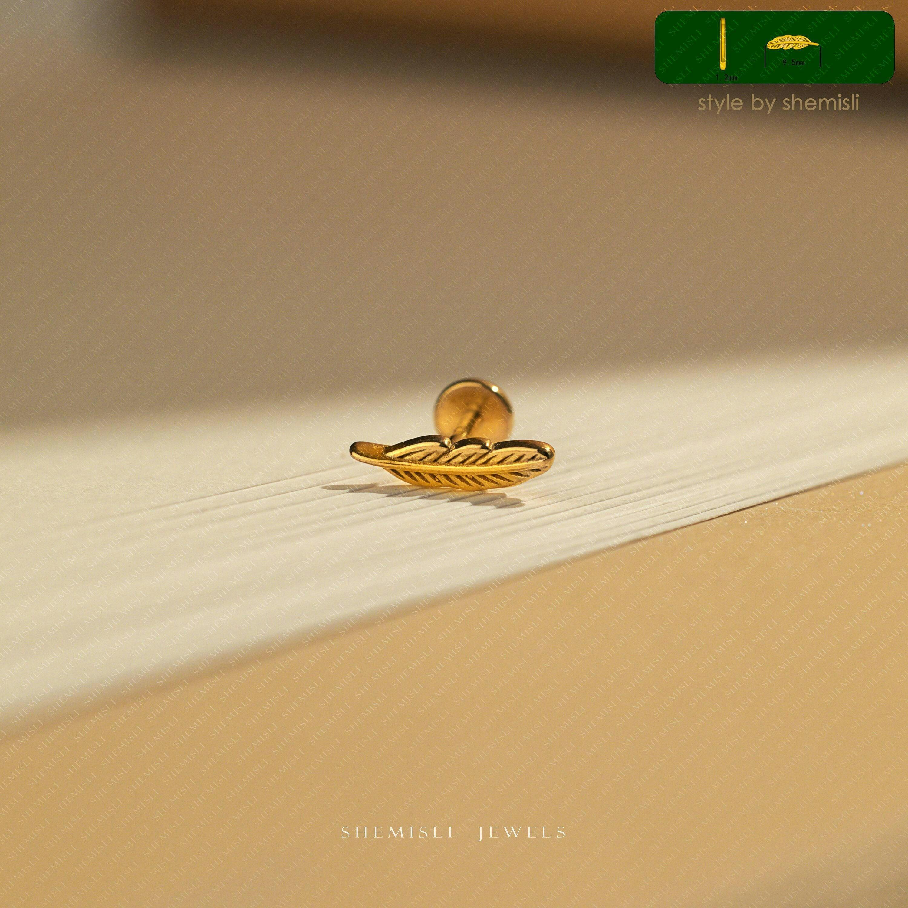 Tiny Feather Threadless Flat Back Earring, 20,18,16ga, 5-10mm Unisex,