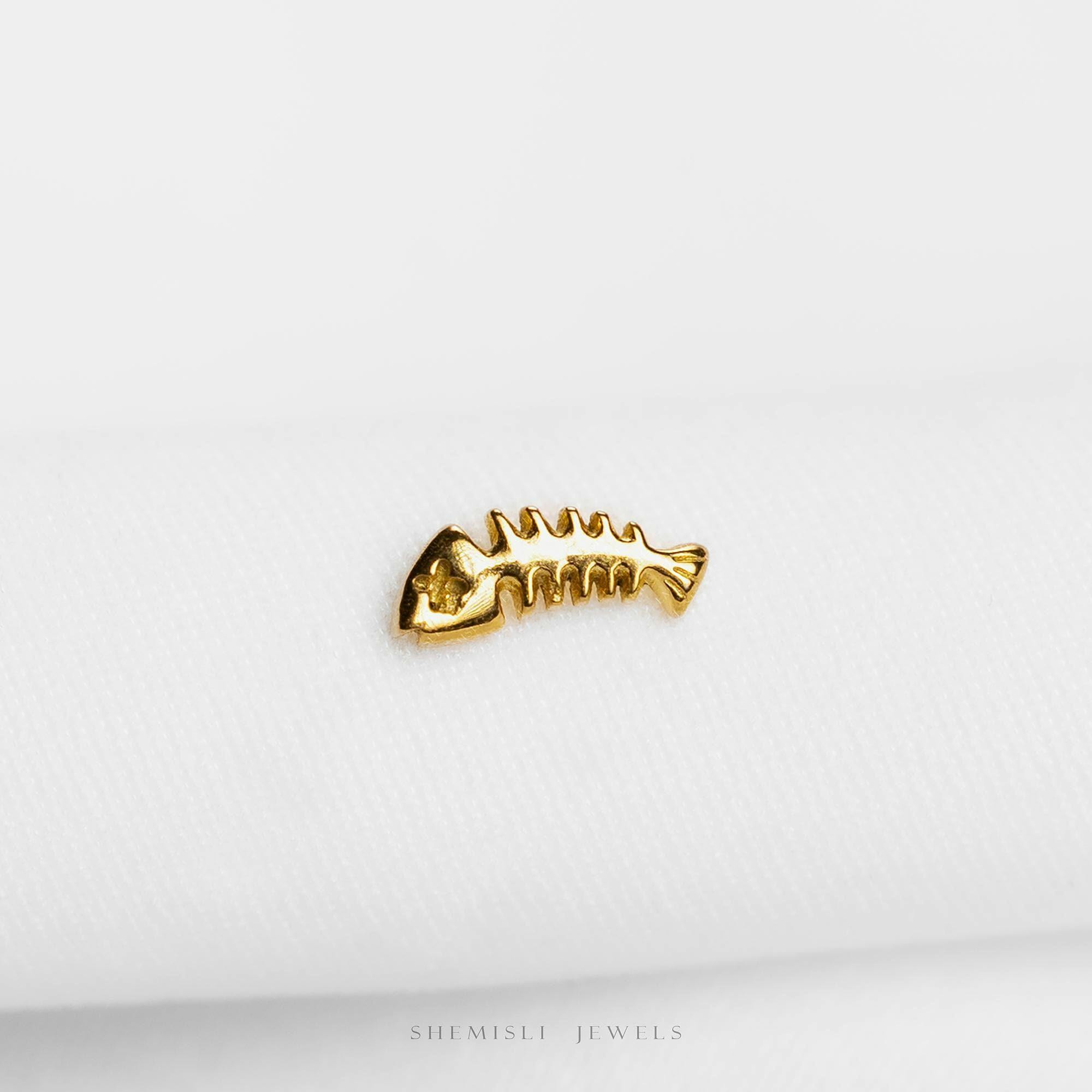 Tiny Fish Bone Threadless Flat Back Earring, 20,18,16ga, 5-10mm