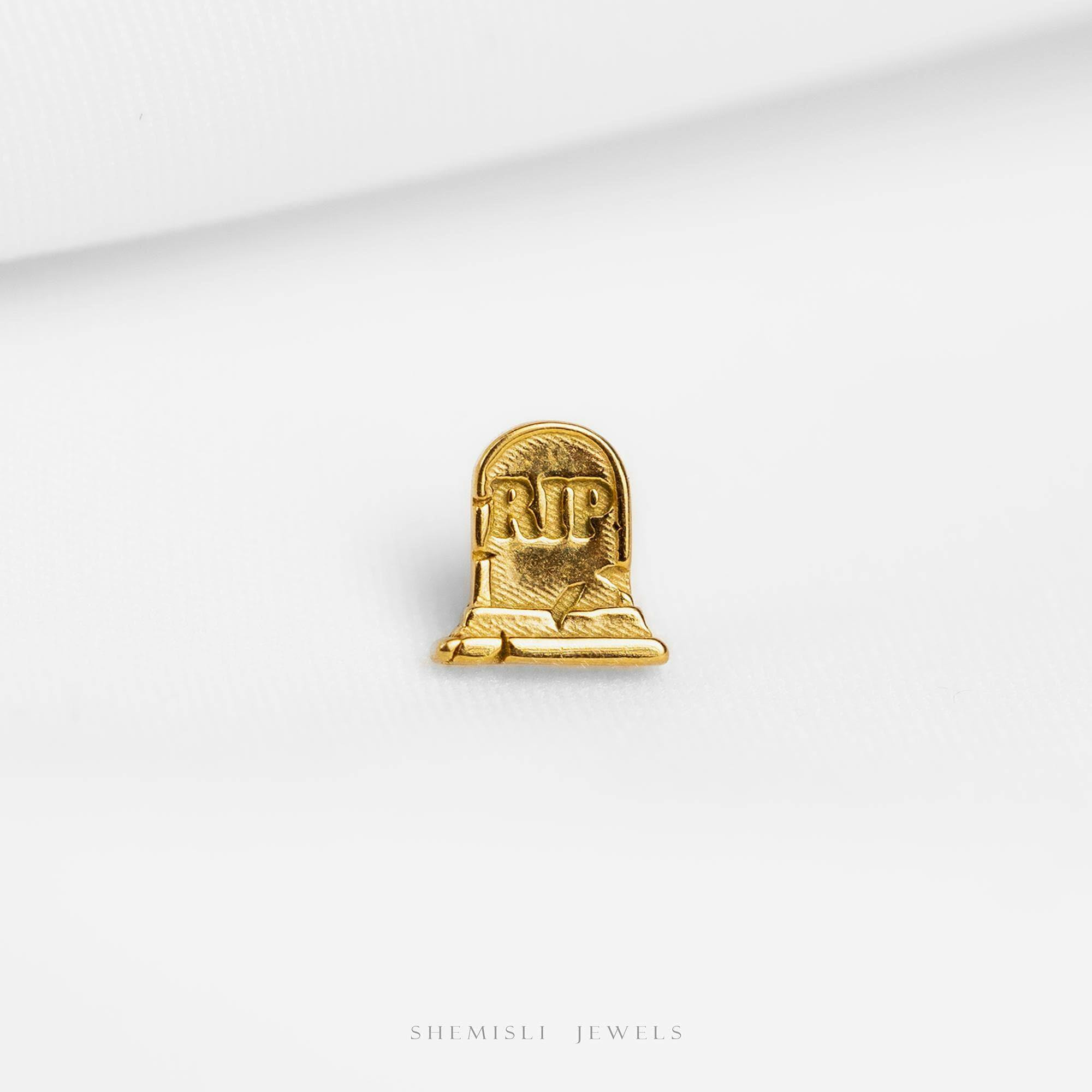 Tiny Grave Threadless Flat Back Earring, Gravestone, Rest in