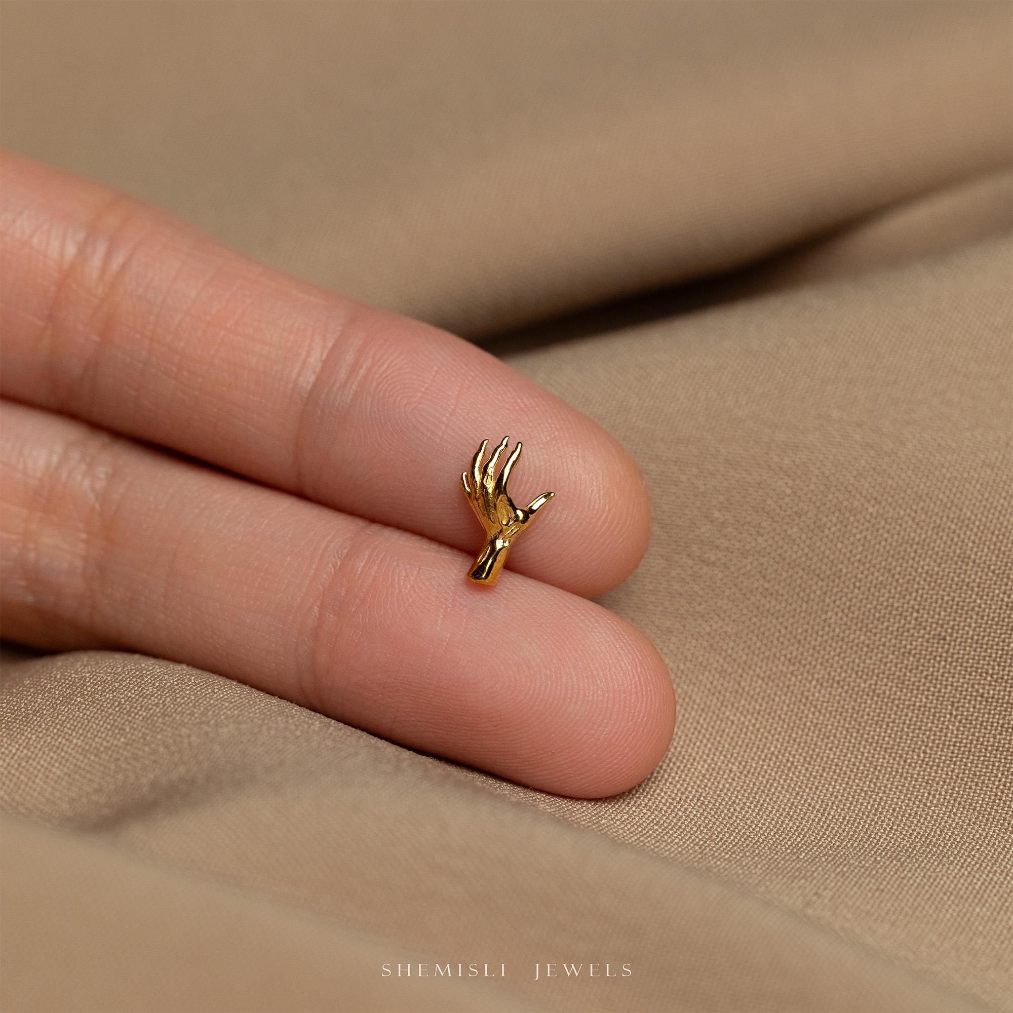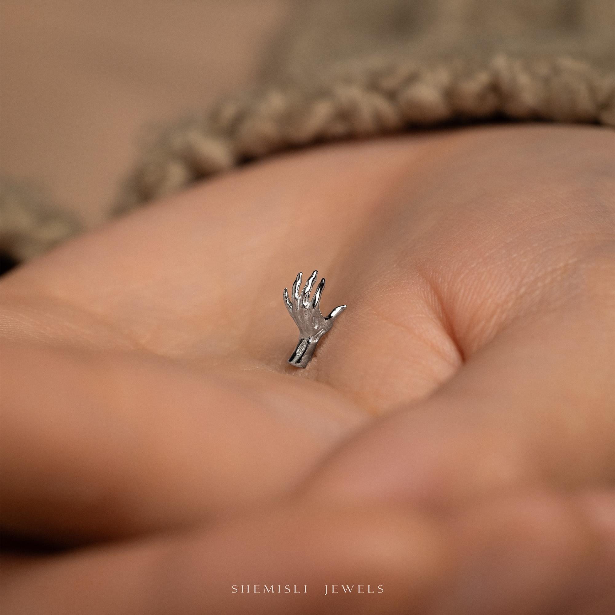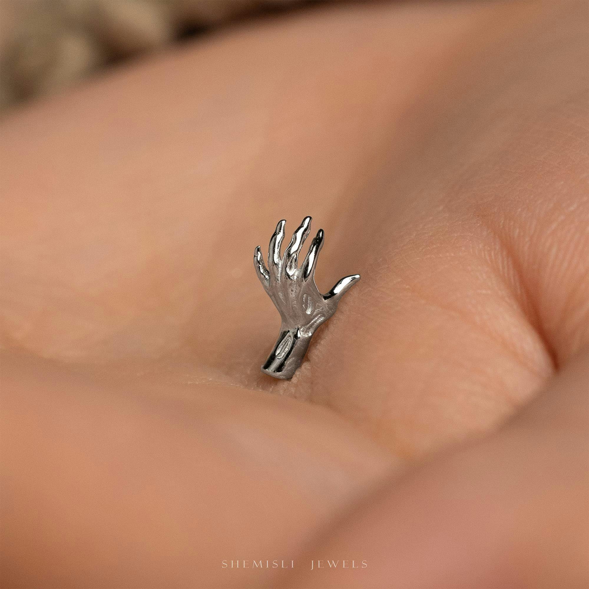 Tiny Graveyard Zombie Hand Threadless Flat Back Earrings, 20,18,16ga,