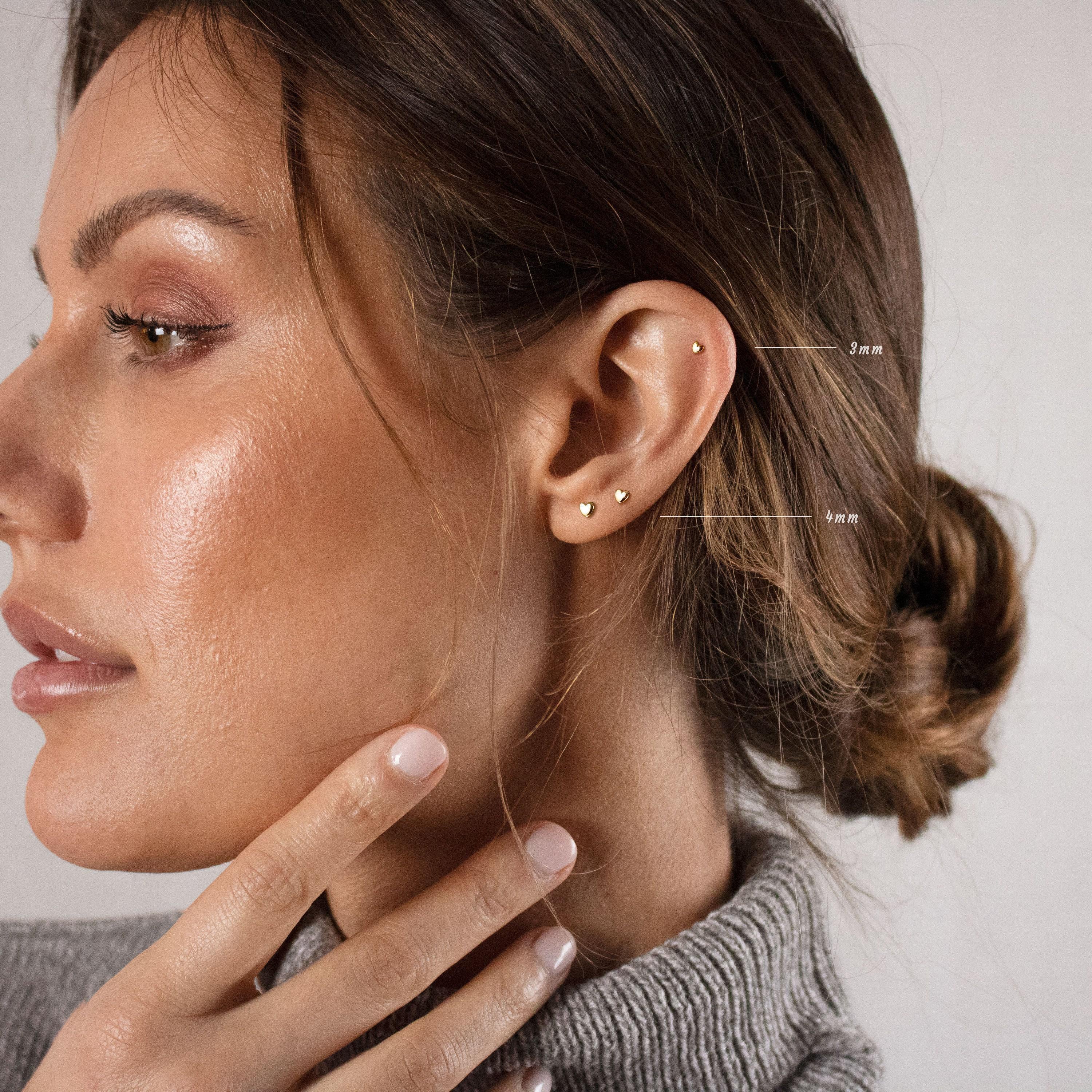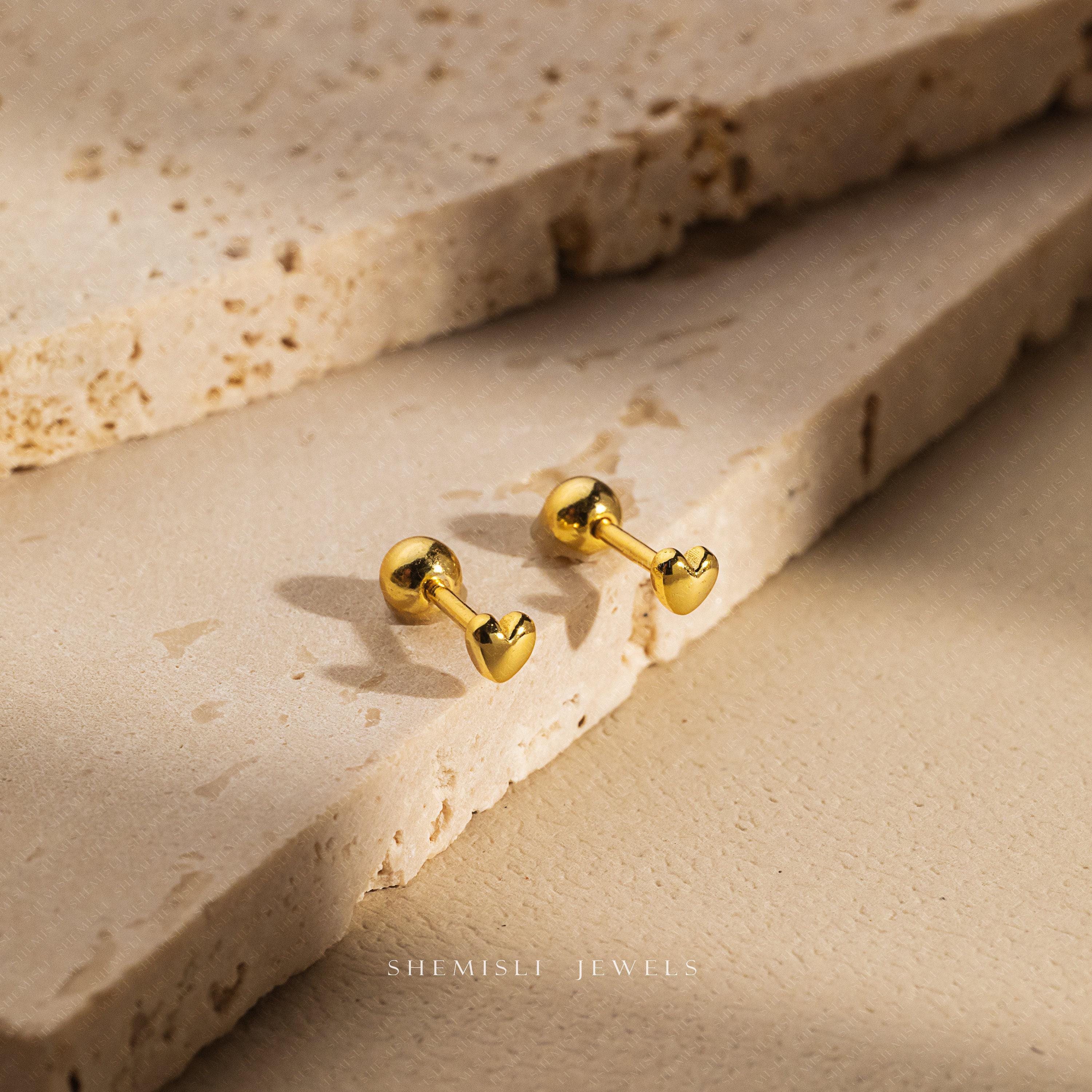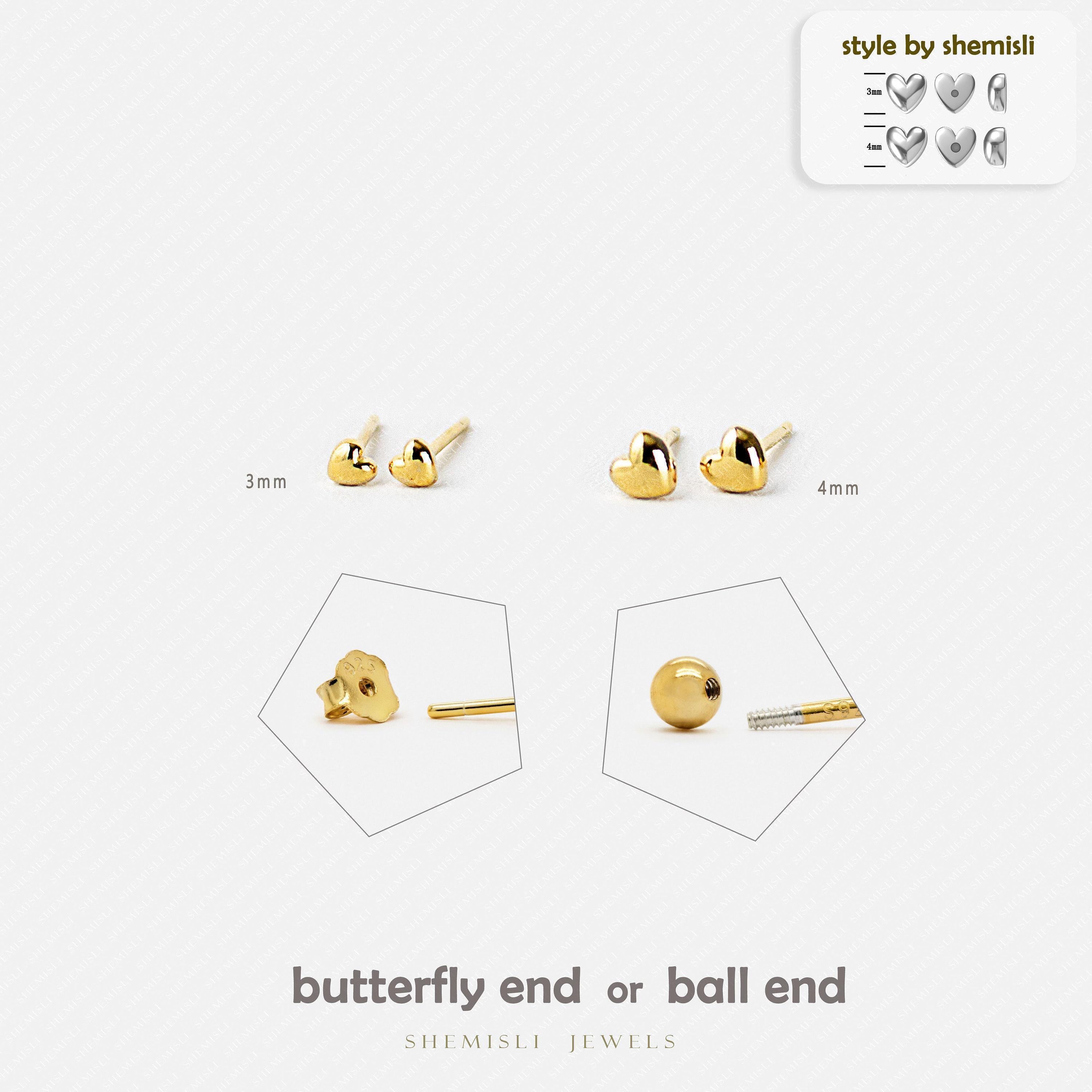 Heart Stud, Butterfly End or Screw Ball End Earring,