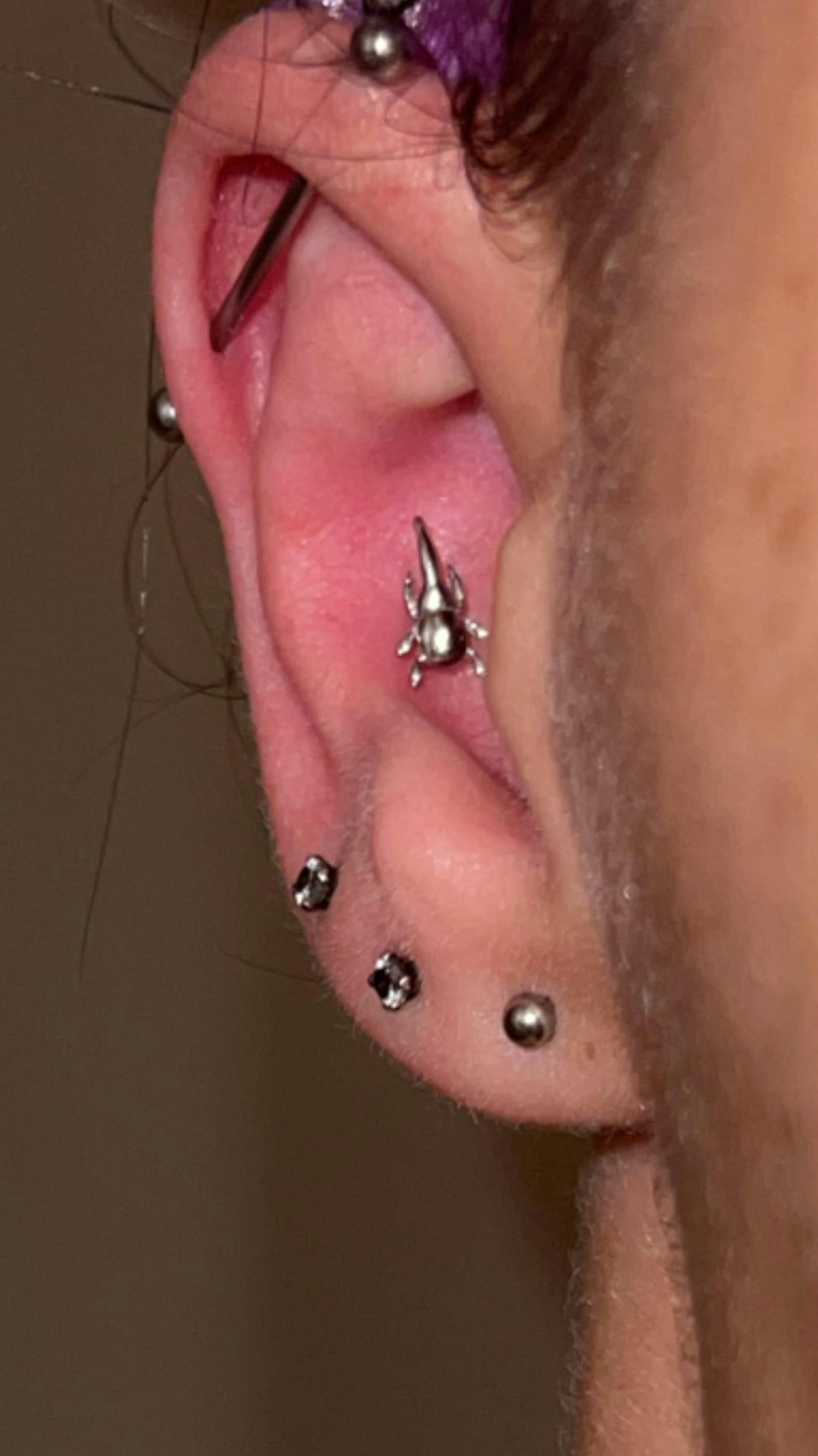 Tiny Hercules Beetle Threadless Flat Back Earring, 20,18,16ga, 5-10mm
