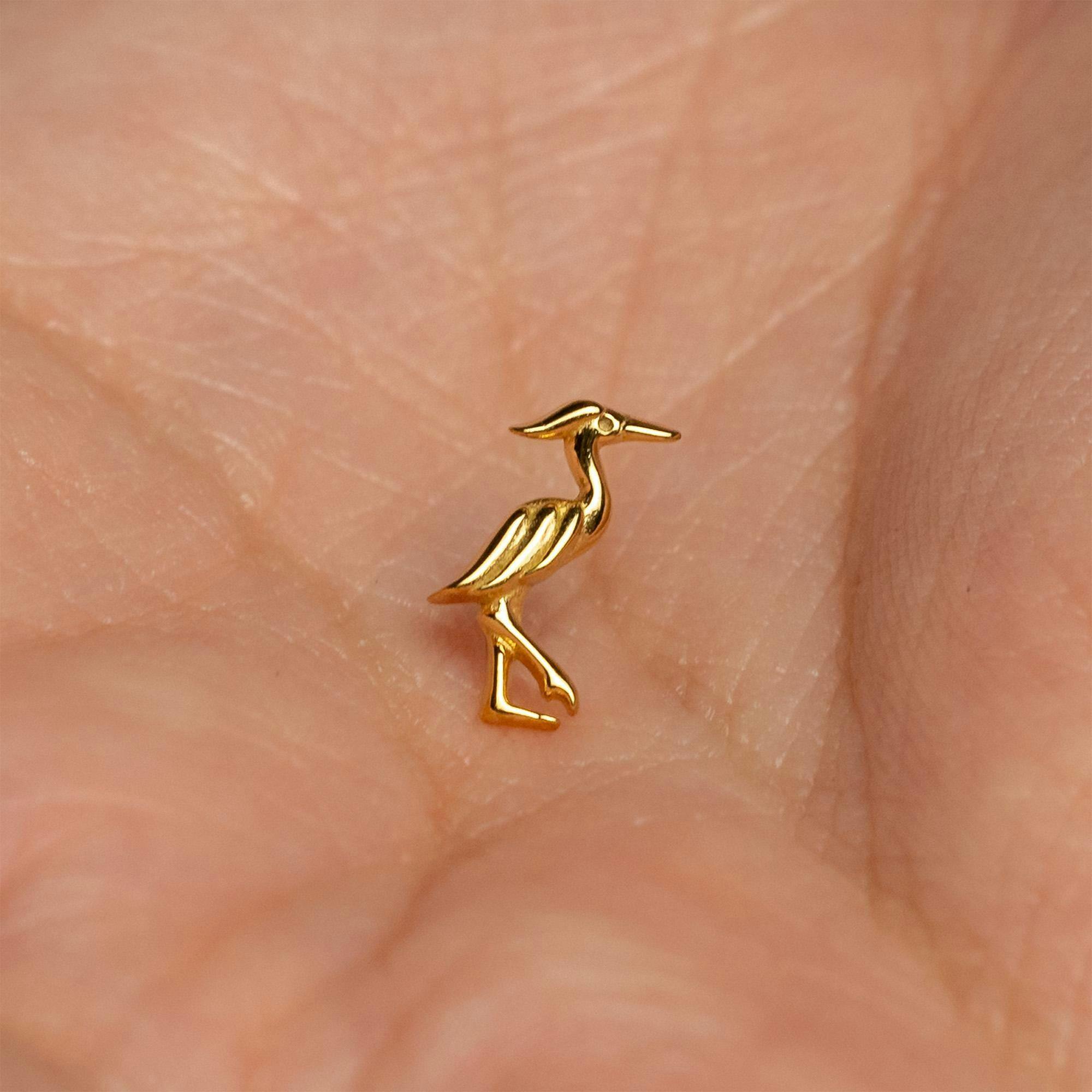 Tiny Heron Threadless Flat Back Earring, 20,18,16ga, 5-10mm Unisex,
