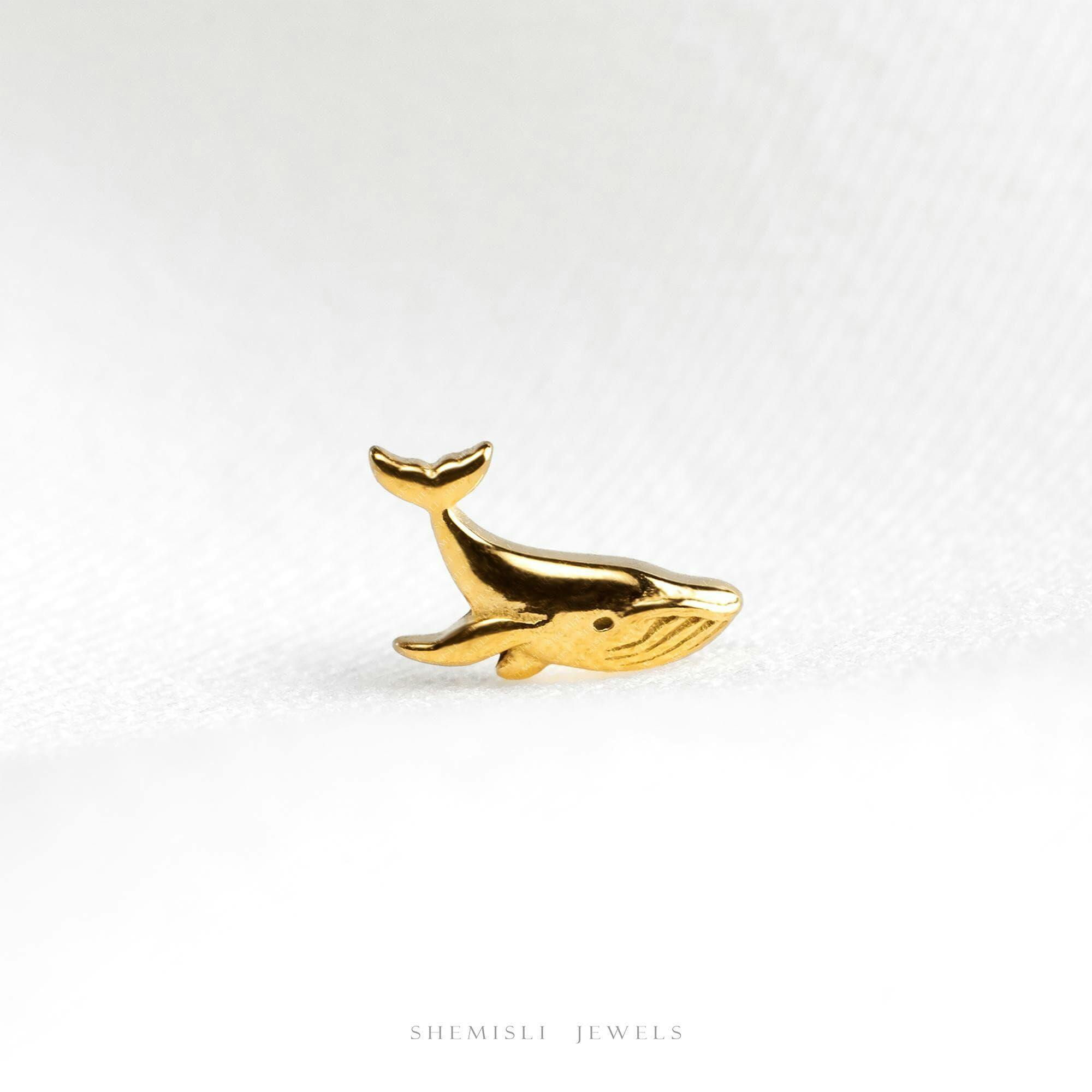 Tiny Humpback Whale Threadless Flat Back Earring, 20,18,16ga, 5-10mm