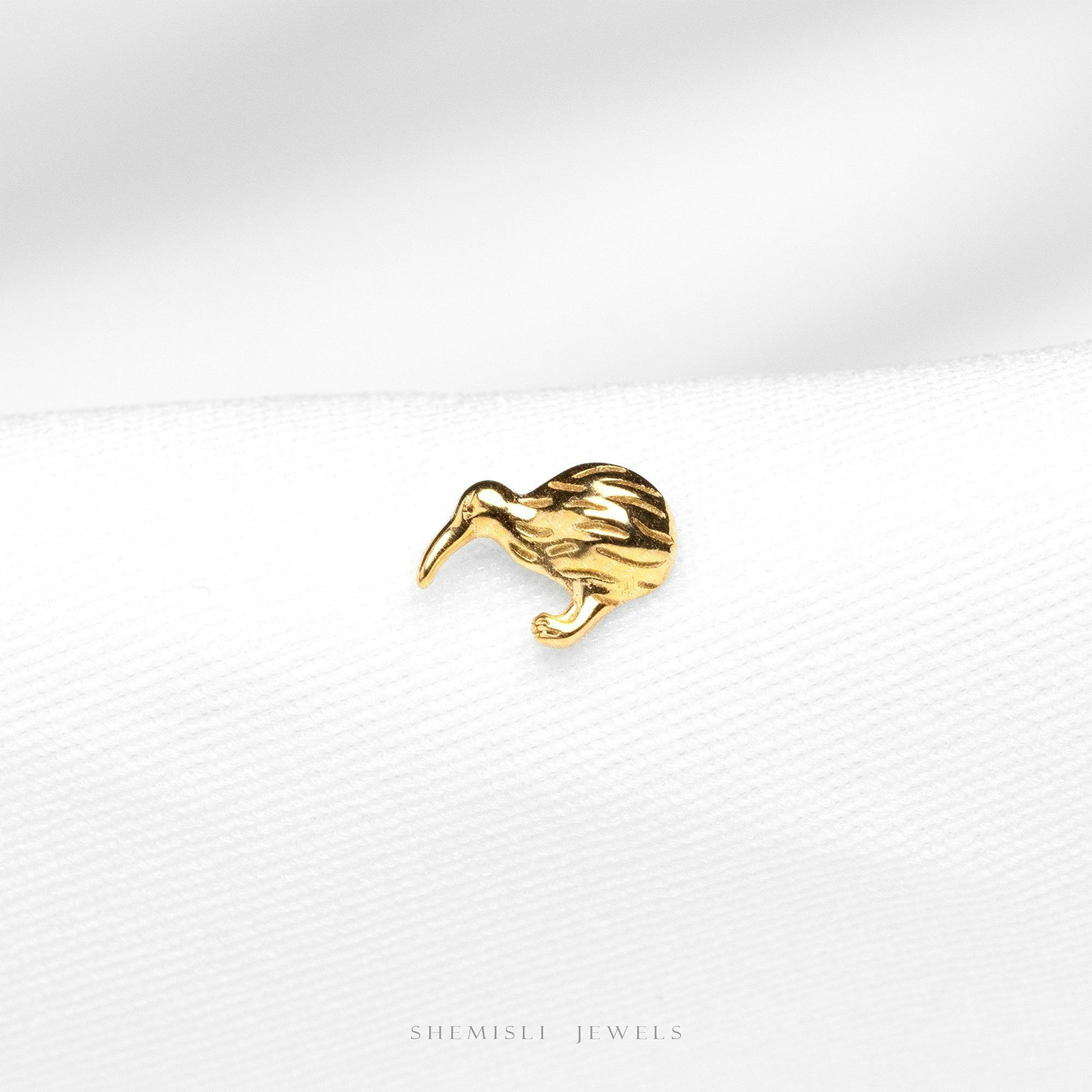 Tiny Kiwi Bird Threadless Flat Back Earring, 20,18,16ga, 5-10mm