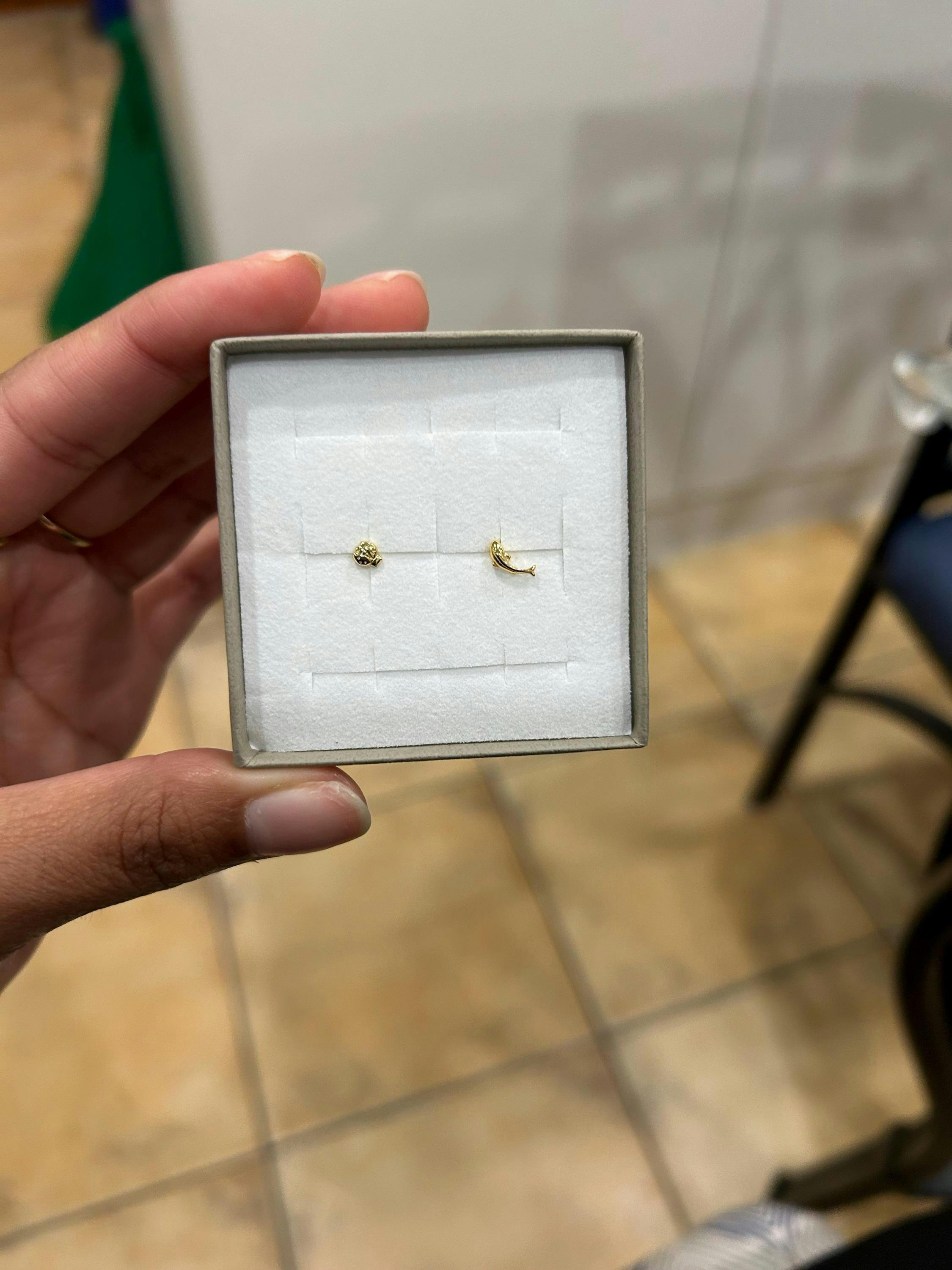 ball end: post thickness is 19g (0.9mm), post length is 6mm with ball end attached , ball end is 3.5mm