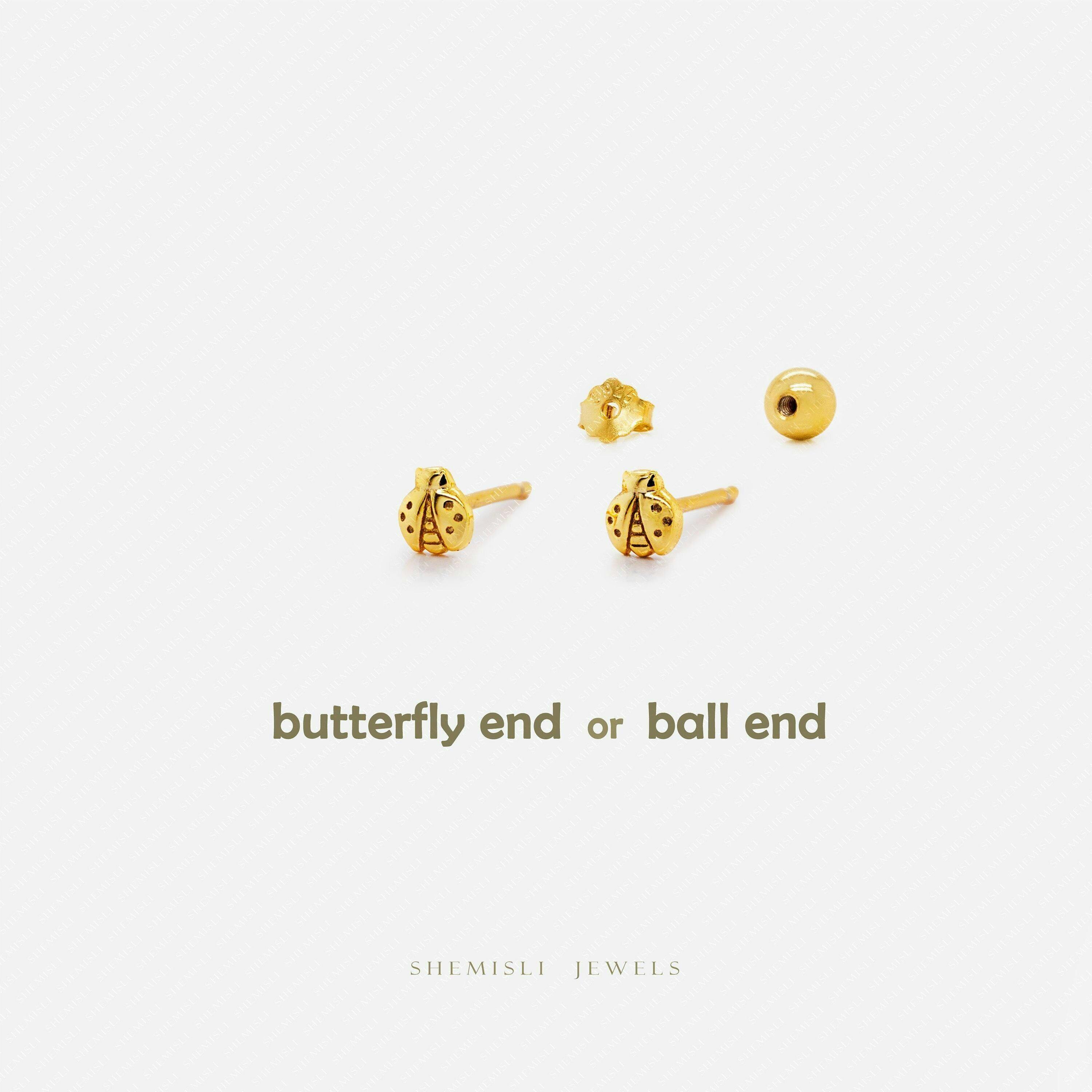 Tiny Ladybug Stud Earring, Unisex, Gold, Silver SS811 Butterfly