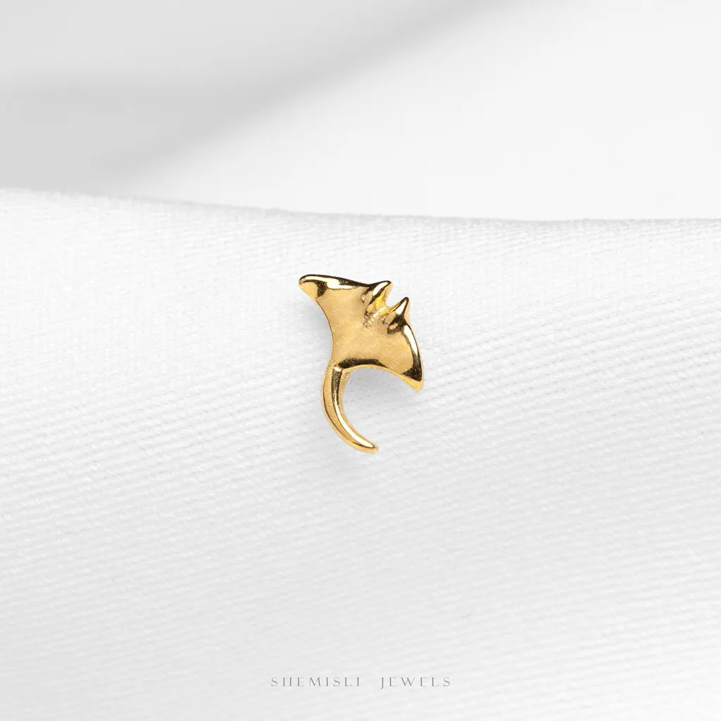 Manta Ray Stud, Threadless Flat Back Earring, Minimalist Style, A-SS1066
