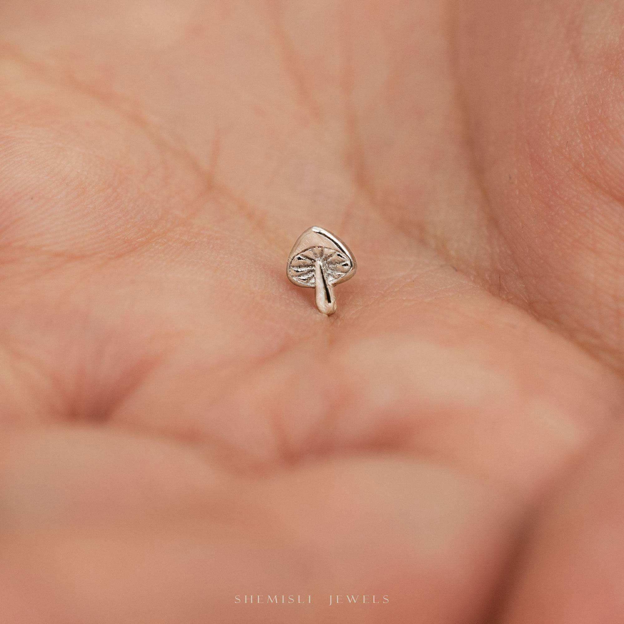 Tiny Mushroom Threadless Flat Back Earring, 20,18,16ga, 5-10mm Unisex,