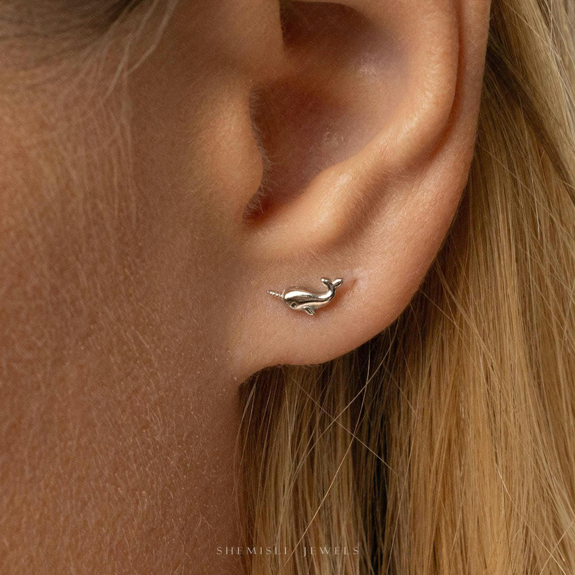 Tiny Narwhal Whale Threadless Flat Back Earring, 20,18,16ga, 5-10mm