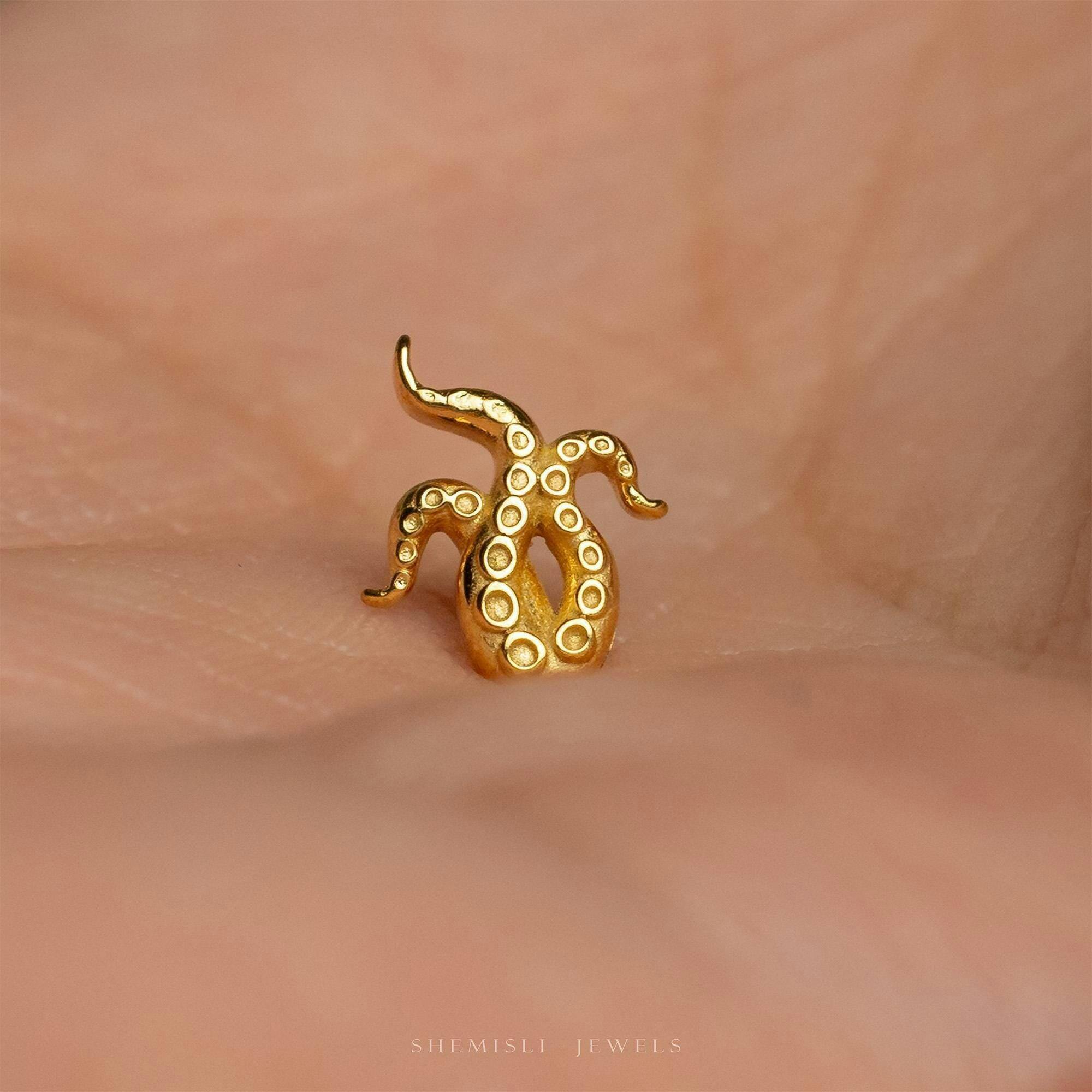 Tiny Octopus Tentacle Threadless Flat Back Earring, 20,18,16ga, 5-10mm