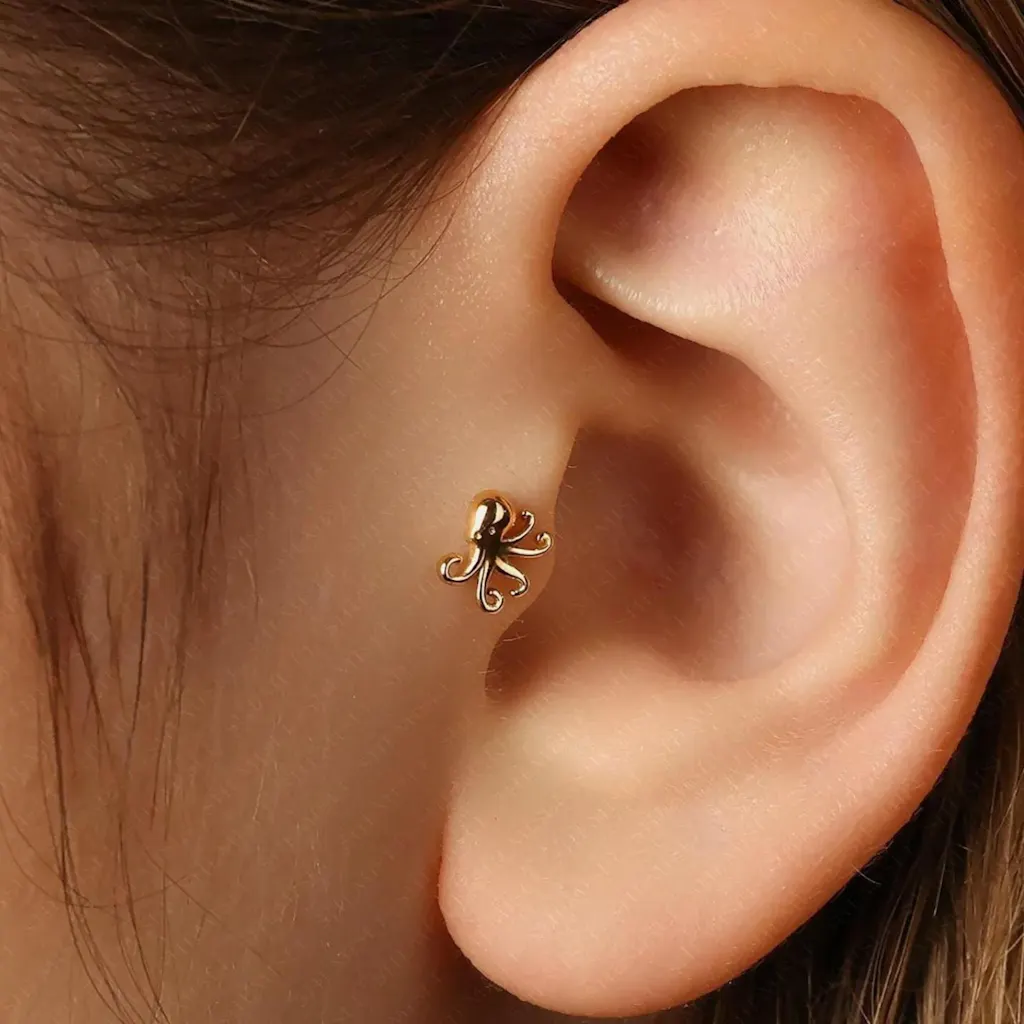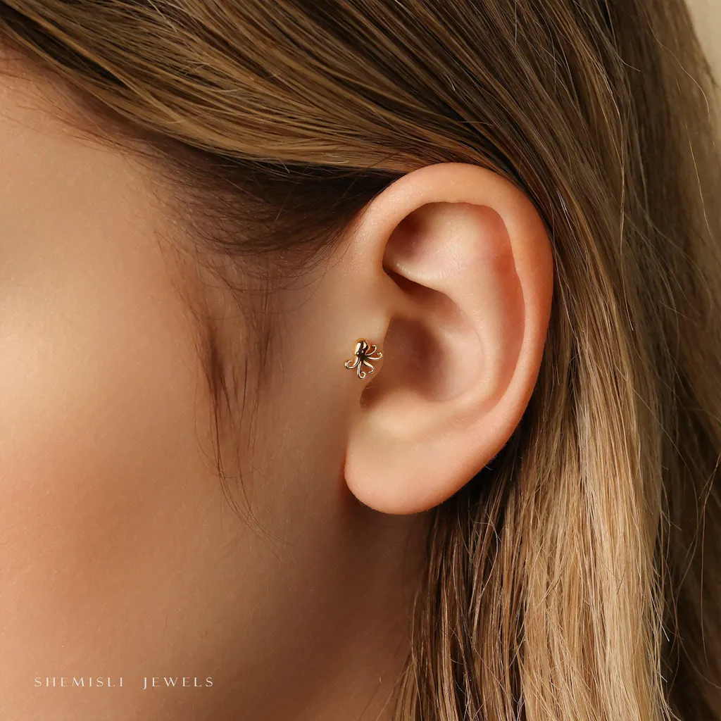Octopus Tragus Stud, Threadless Flat Back Earring, Minimalist Style, A-SS576