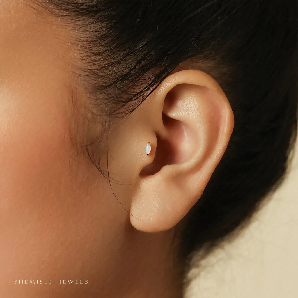 Opal Marquise Tragus Stud, Threadless Flat Back Earring, Minimalist Style, A-SS733
