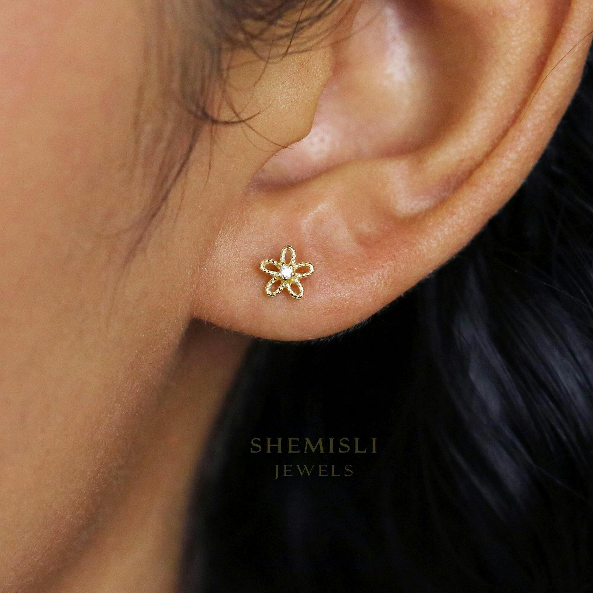 Tiny Open Flower Stud, Forget Me Not Earring, Unisex,