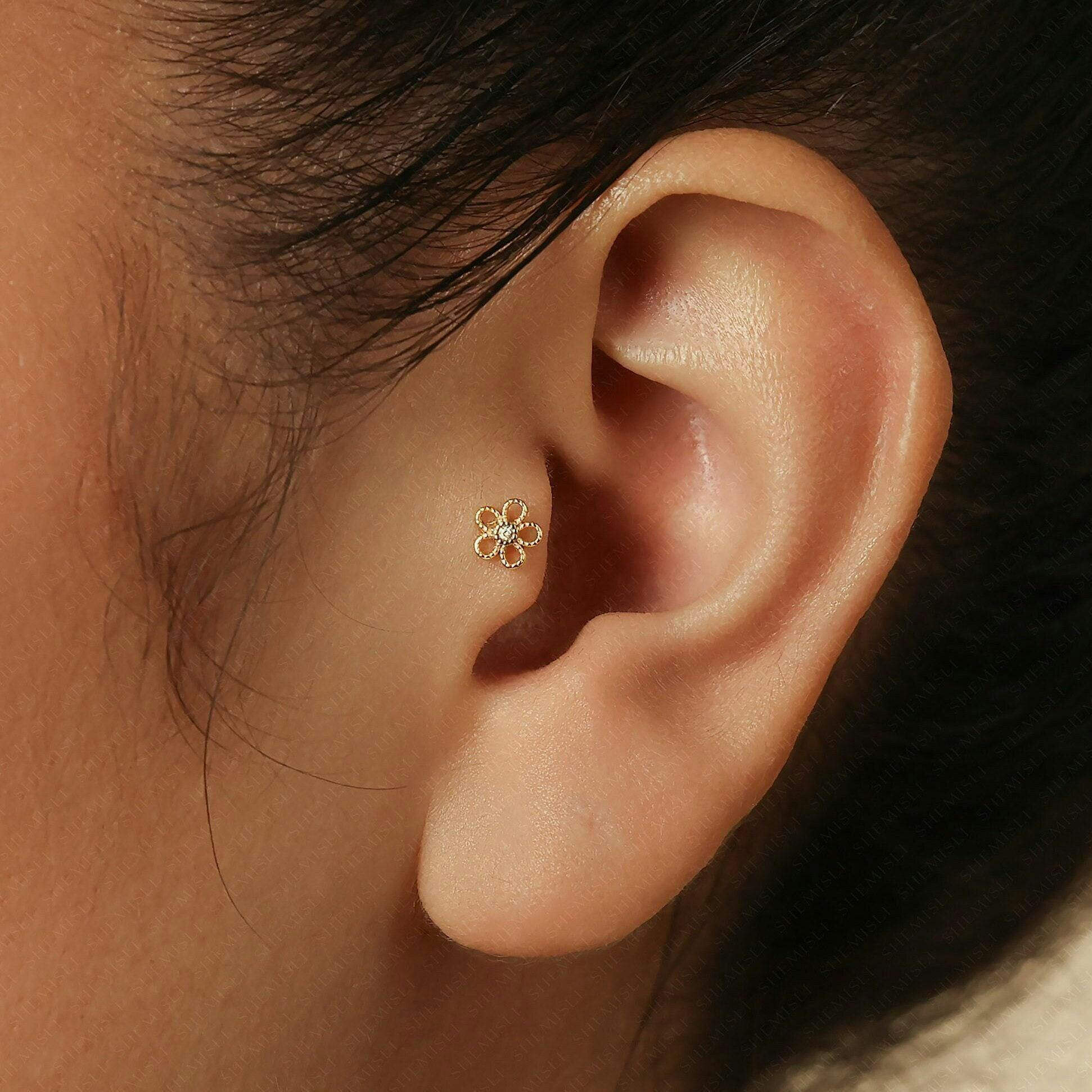Tiny Open Flower Threadless Flat Back Tragus Stud