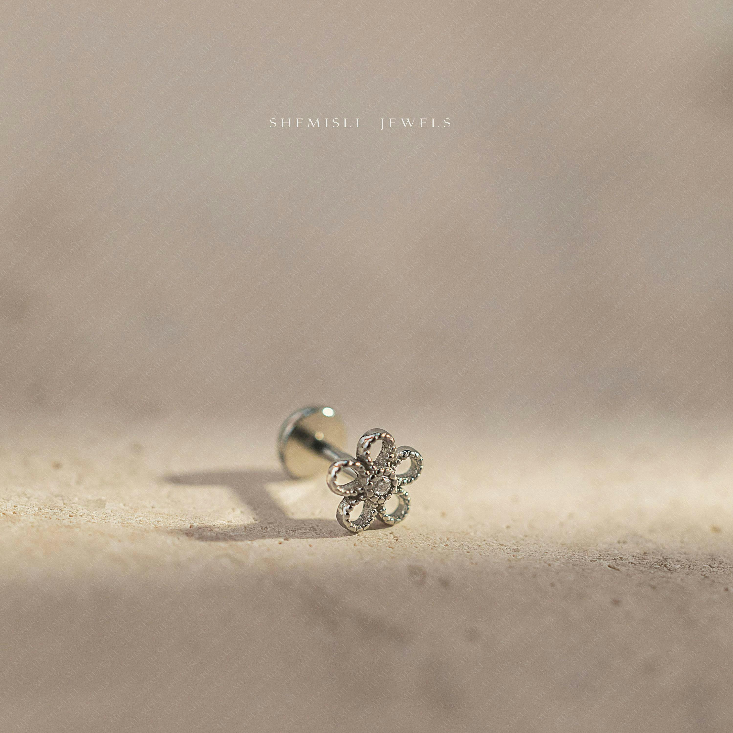 Tiny Open Flower Threadless Flat Back Nose Stud, 20,18,16ga,