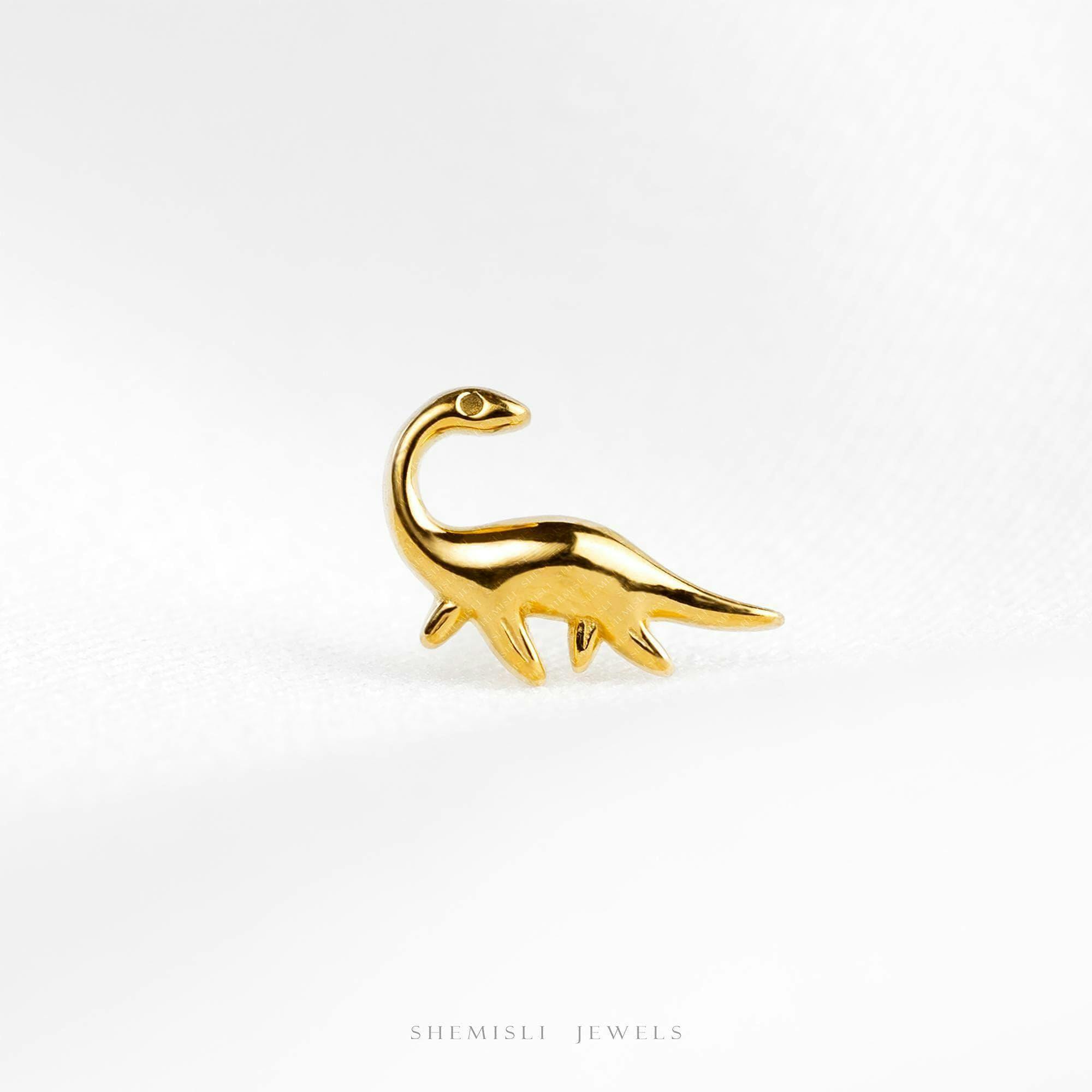 Tiny Plesiosaurs Looking Back Threadless Flat Back Earring, 20,18,16ga,