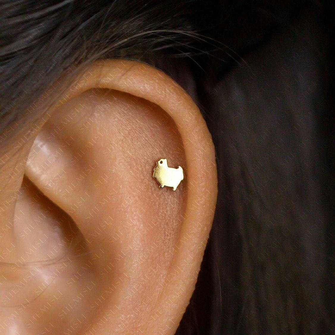 Tiny Pom Studs, Pomeranian Dog Earring, Unisex, Gold, Silver