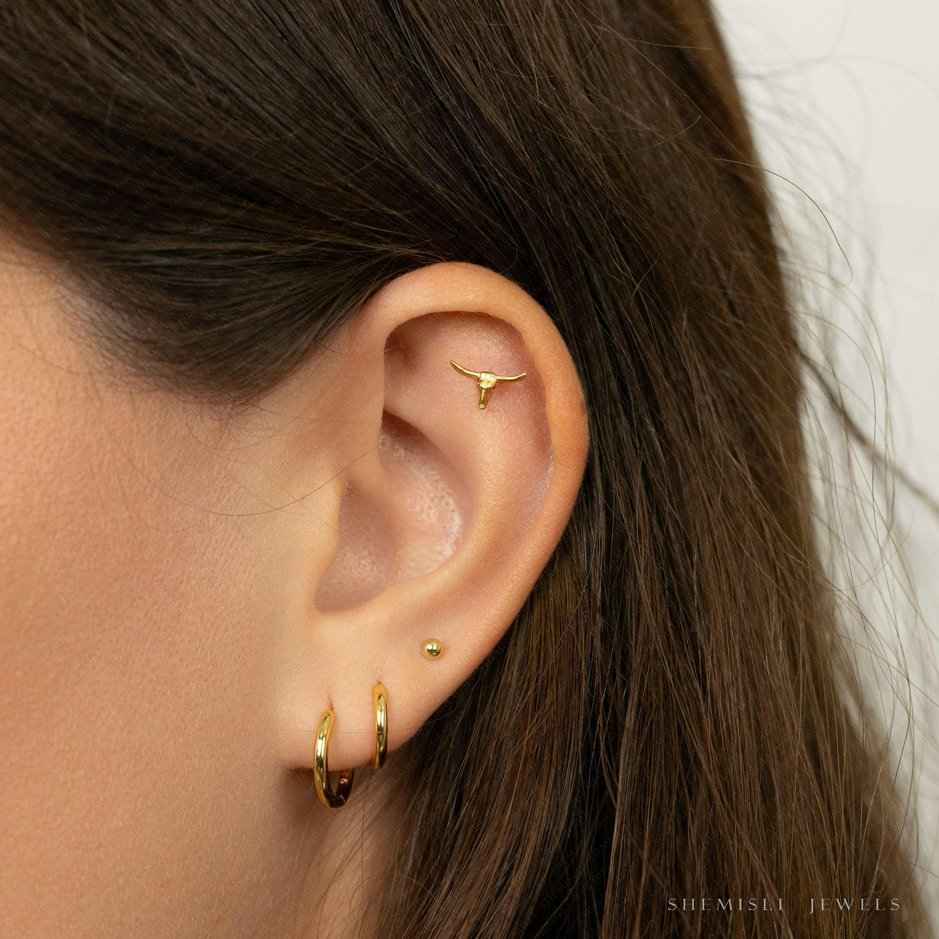 Tiny Ram Skull, Ox head, Threadless Flat Back Earring,