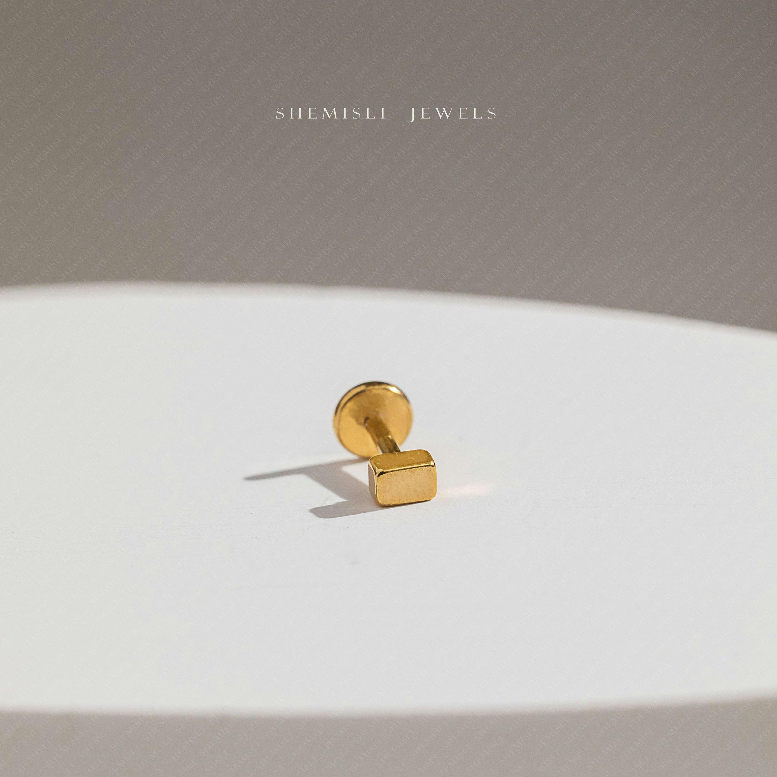 Tiny Rectangle Threadless Flat Back Tragus Stud, 20,18,16ga, 5-10mm