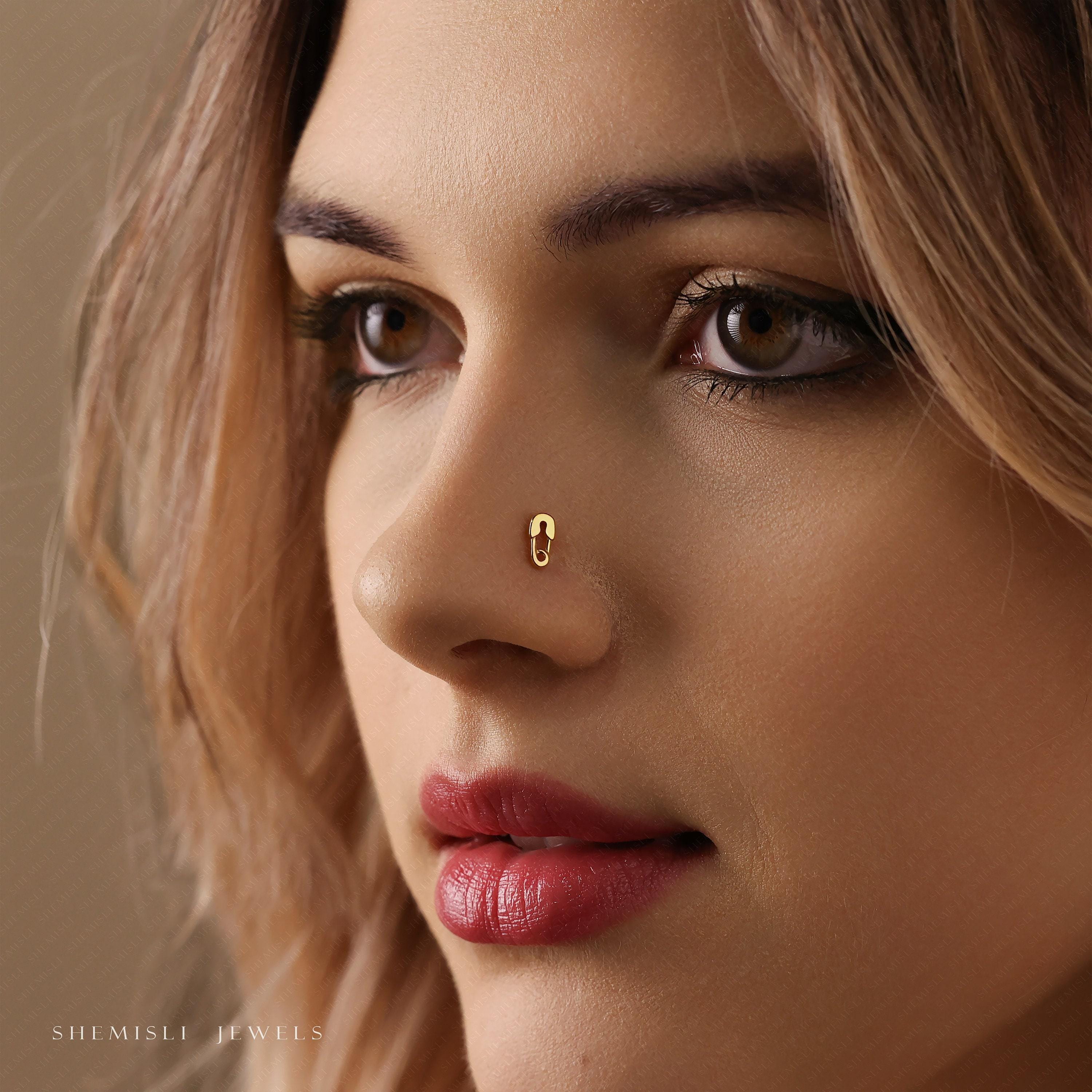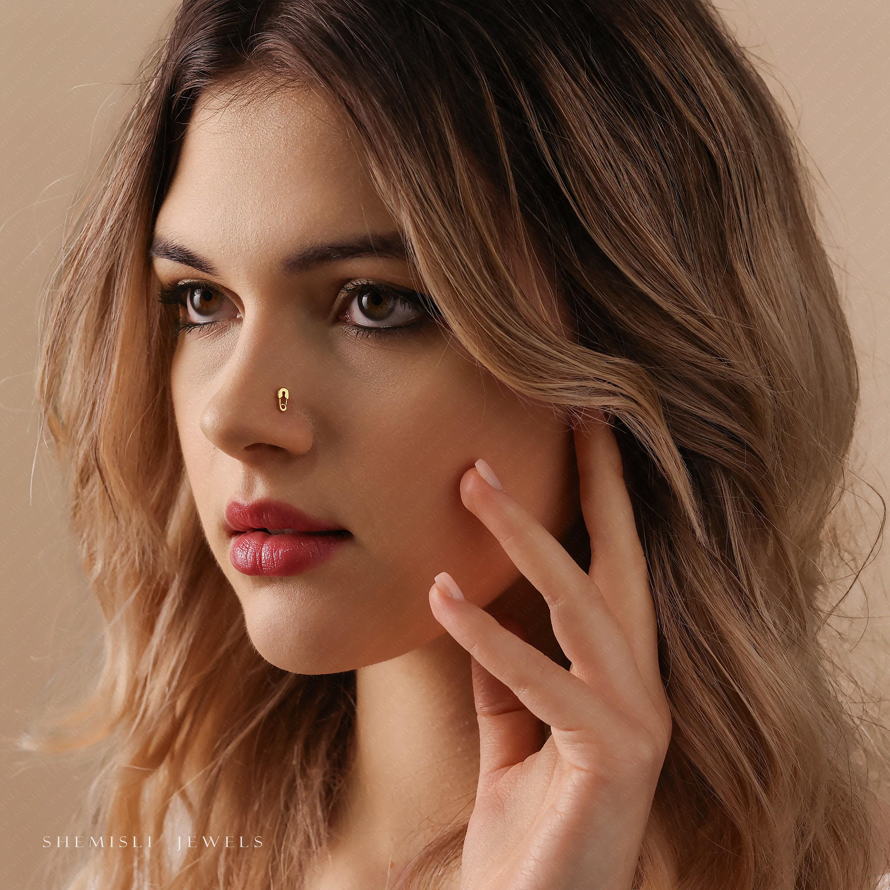 Safety Pin Nose Stud, Threadless Flat Back, Minimalist Style,