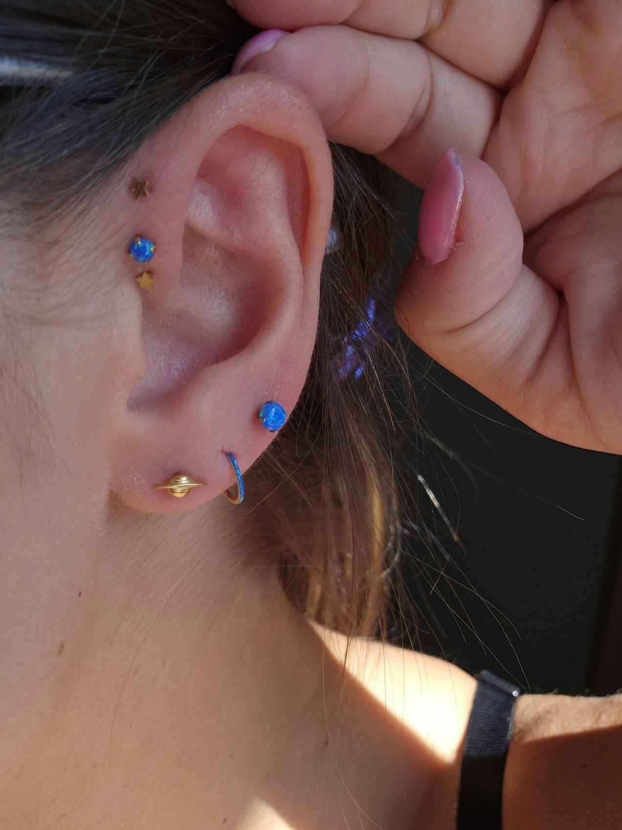 Tiny Saturn Planet Threadless Flat Back Earring, 20,18,16ga, 5-10mm