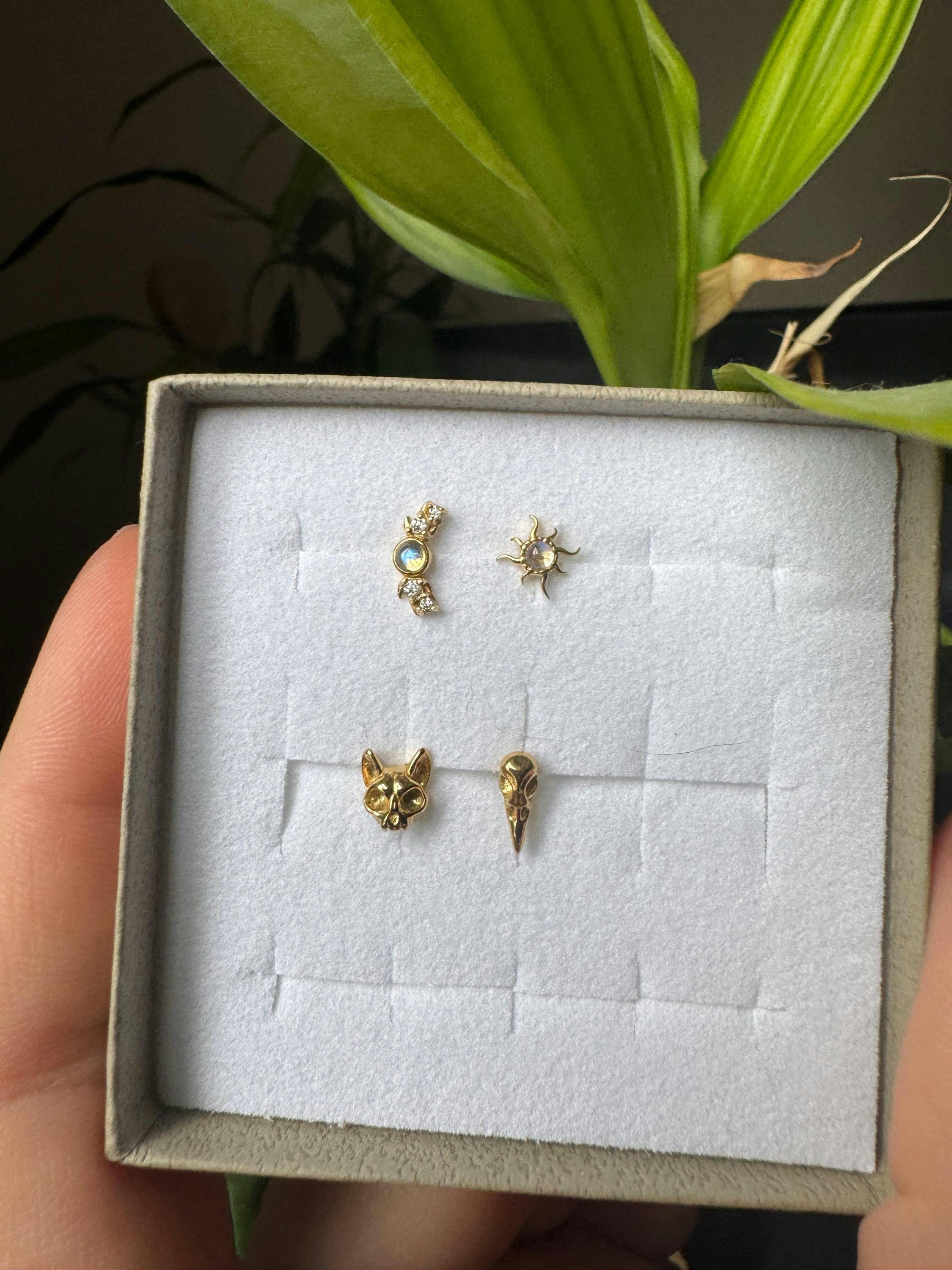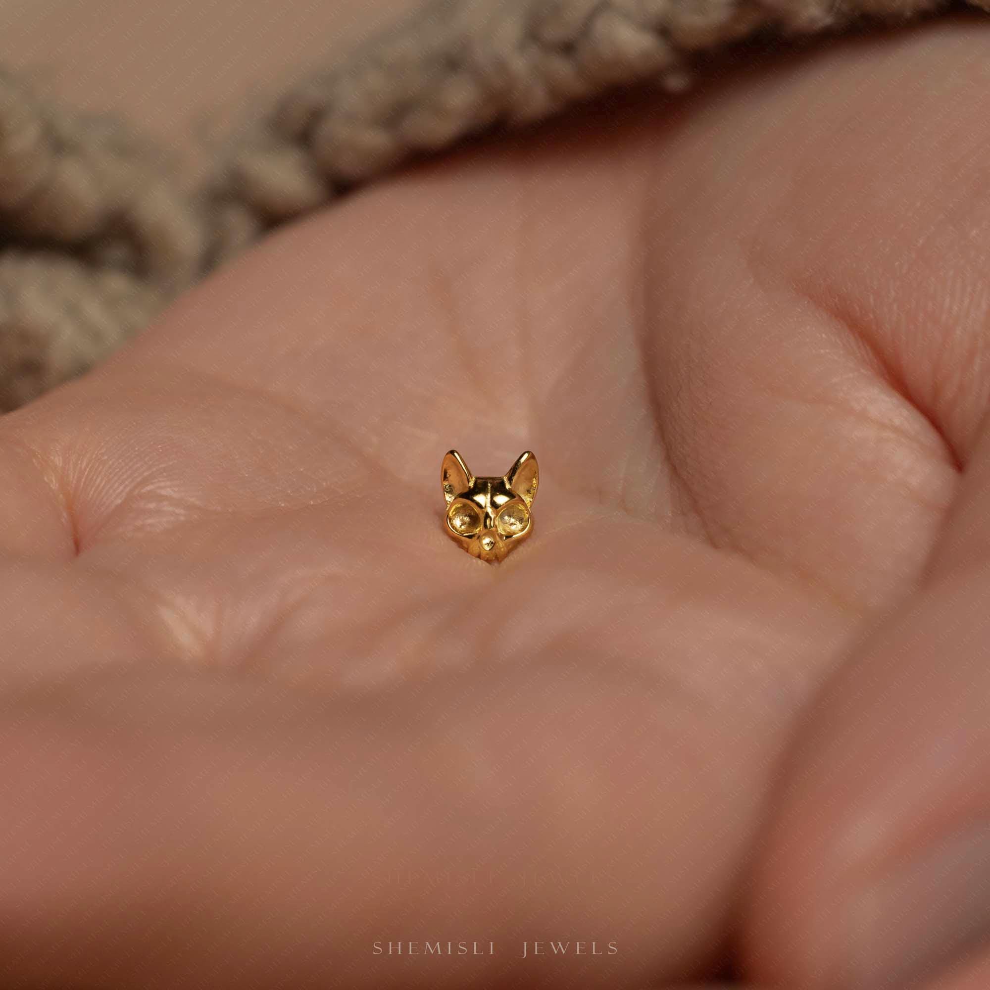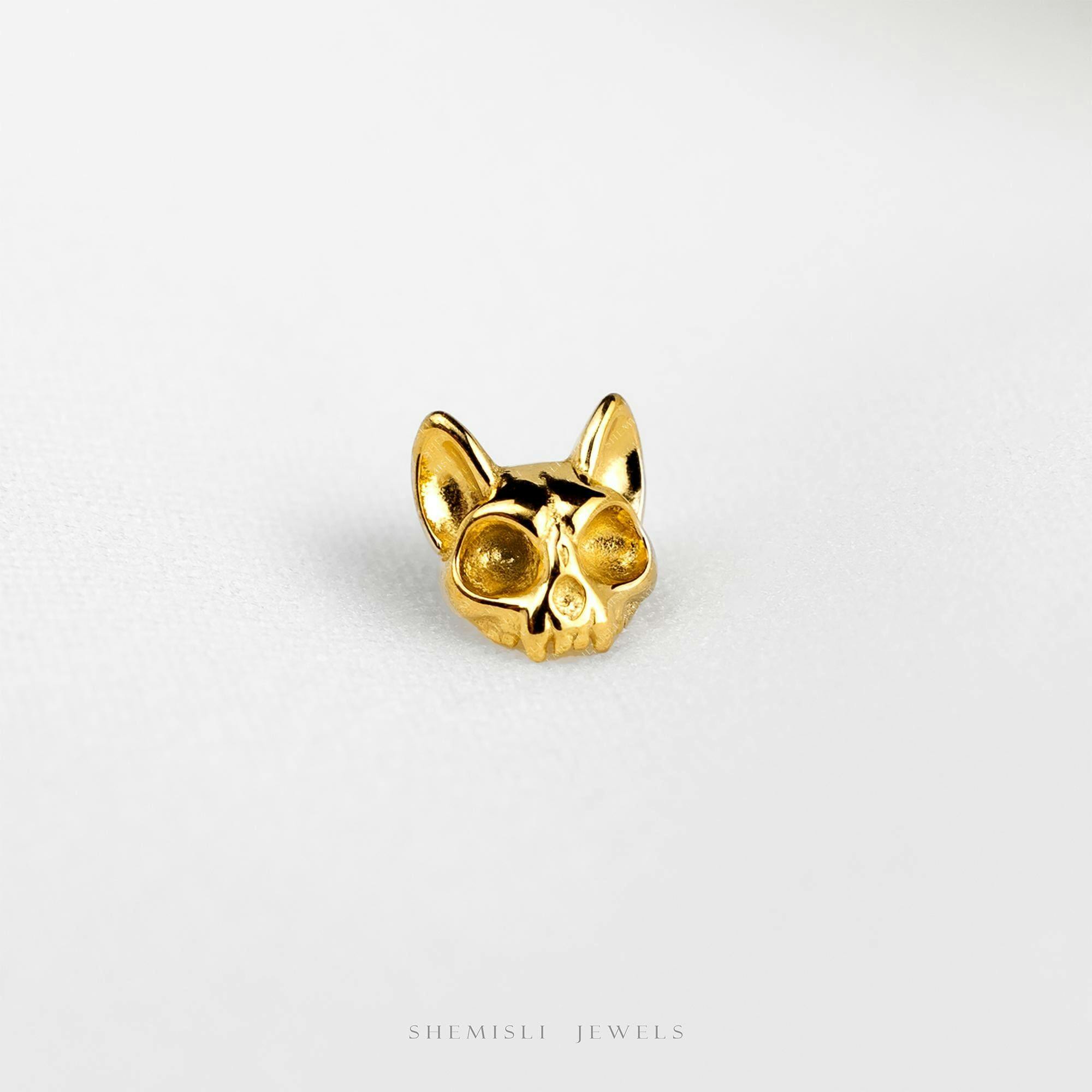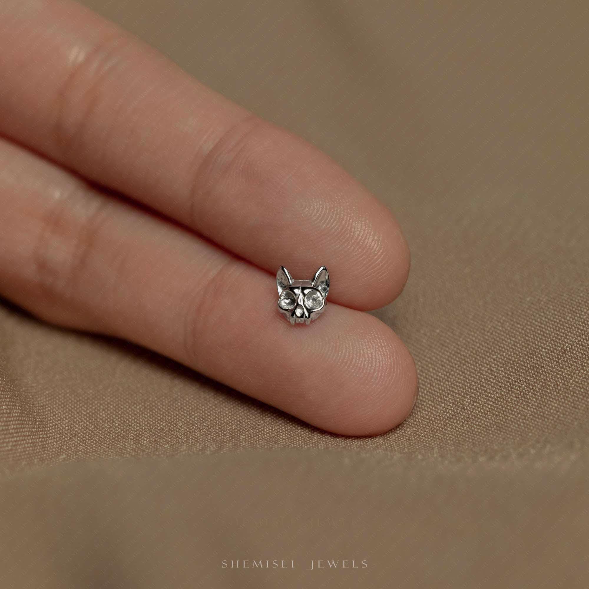 Tiny Scary Cat Skull Threadless Flat Back Earring, 20,18,16ga,