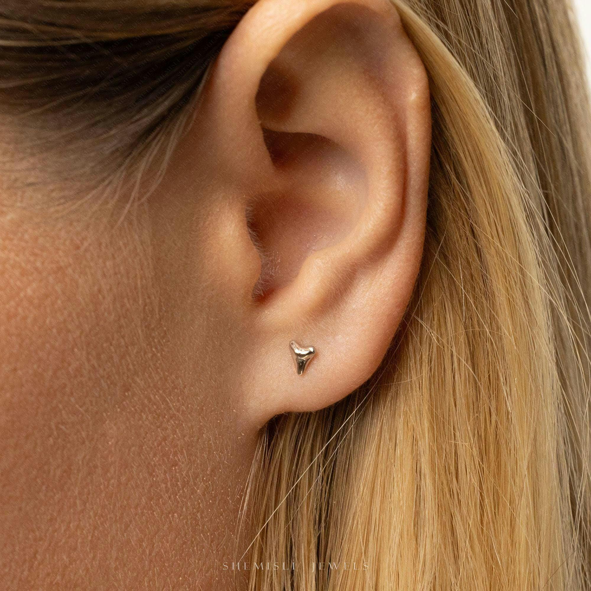 Tiny Shark Tooth Threadless Flat Back Earring, 20,18,16ga, 5-10mm