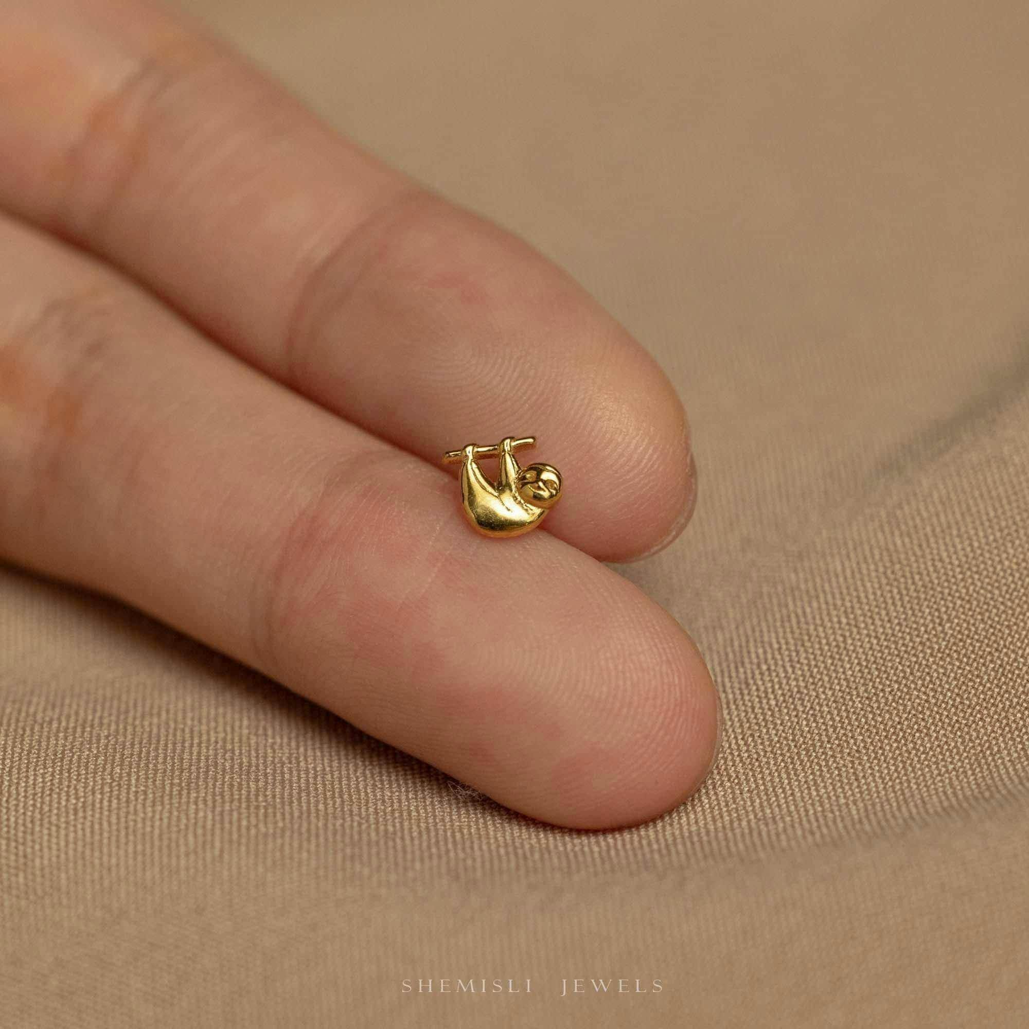 Tiny Sloth Threadless Flat Back Earring, 20,18,16ga, 5-10mm Unisex,