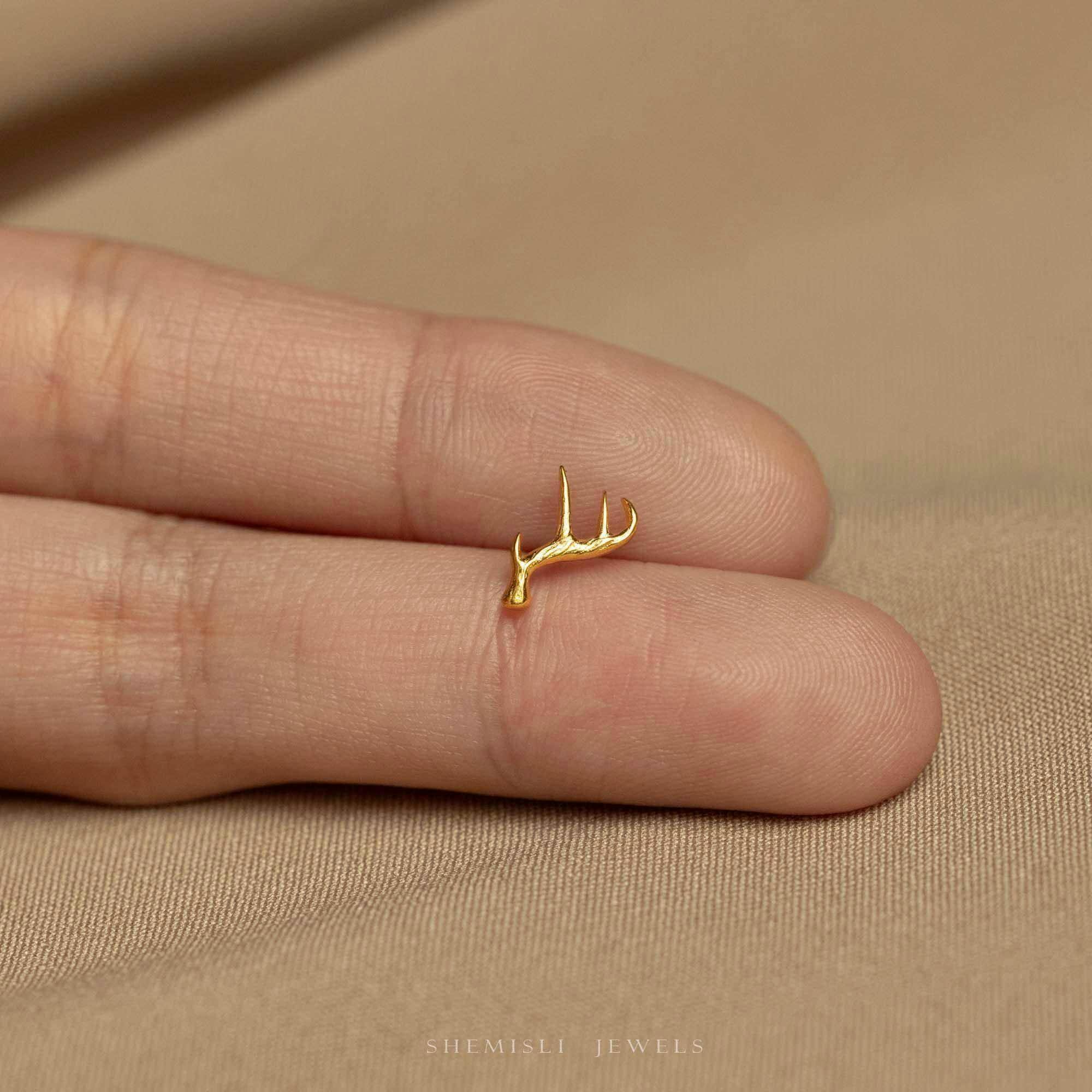 Tiny Stag Deer Antler Threadless Flat Back Earring, 20,18,16ga,
